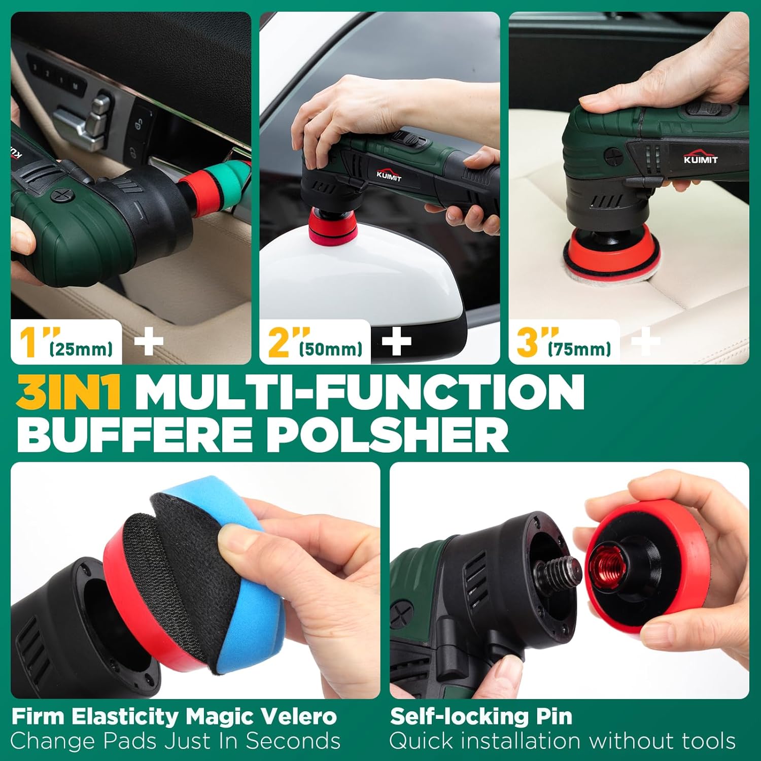 KUIMIT 1"/2"/3" Rotary Polisher Kit | 780W High-Power Polishing Machine w/ 27-Piece Accessories |M5/8-11 Thread 75mm/100mm/140mm Extension Shafts | For Car, Boat & Metal Detailing
