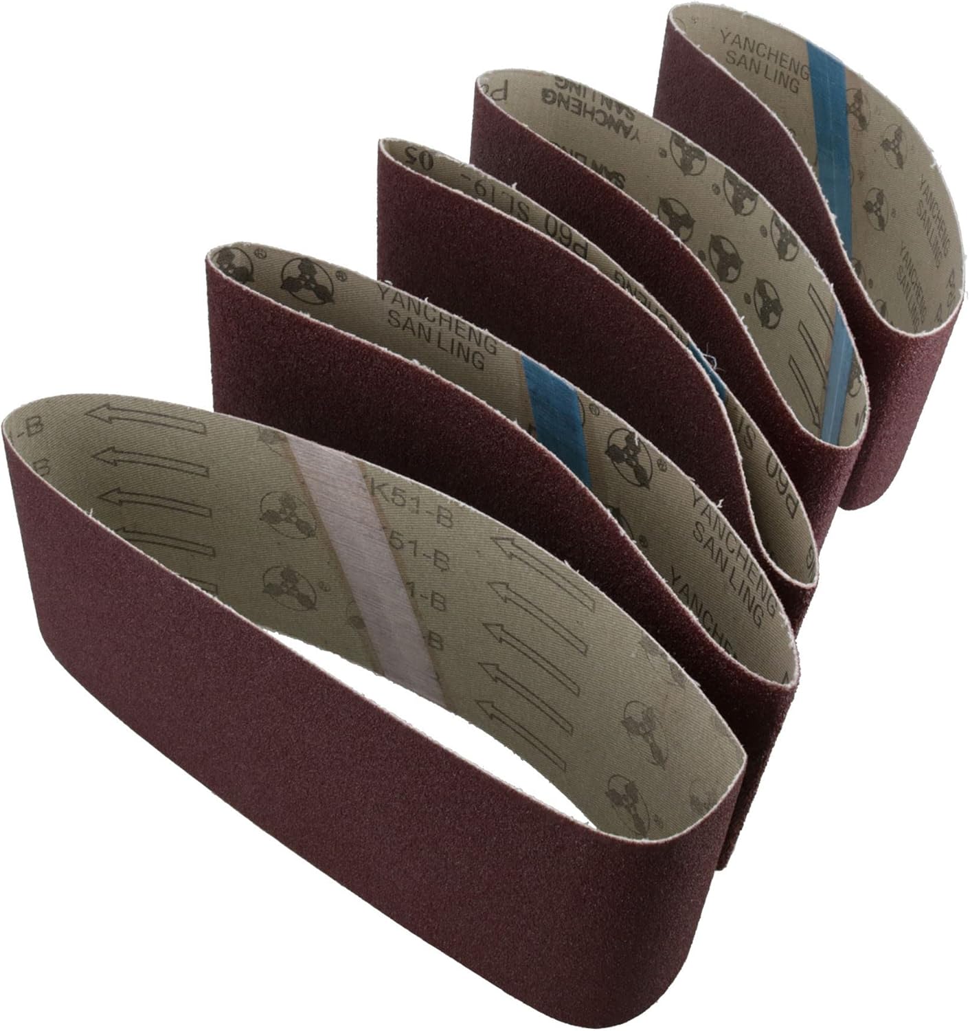 Professional sanding belts for commercial or occasional use 457mm x 75mm sanding belts This listing is for a pack of 25 sanding belts Mixed grit sanding belts to cater for all needs and requirements Flexible, durable aluminium oxide sanding belts Suitable for use on wood, paint, varnish, plastics, plasters and light for metal sanding jobs Suitable for the majority of portable machines / sanders Fully resin bonded Mixed grit abrasive sanding belts Suitable for all sanders as well as other machines that take a 457mm x 75mm sanding belt such as Hitachi, Makita, Ryobi, Black & Decker, Bosch etc... Coarse (60 grit), medium (80 grit) and extra fine grit (120) SPECIFICATIONS Sanding belts – 457mm x 75mm Aluminium oxide belts Length of the belt – 457mm Width of the belt – 75mm Pack size – 25 pack 10 x 60 Grit belts (coarse) 10 x 80 grit belts (medium) 5 x 120 grit belt (extra fine)