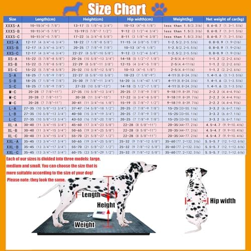 Introducing our premium pet wheelchair, designed to help your furry friends regain their mobility and confidence. Long-term inactivity can impact your pet's health and spirit, but our wheelchair offers a reliable solution, allowing them to enjoy running and playing freely once again. **Product Details:** - **Material:** Durable Aluminum Alloy - **Style:** 2-Wheel Design - **Sizes Available:** XXXS, XXS, XS, S, M, L, XL, XXL - **Suitable for:** Small, Medium, and Large Dogs **Key Features:** - **Lightweight & Portable:** Crafted from aluminum alloy, our wheelchair is easy to maneuver and transport, making outings hassle-free. - **Versatile Mobility:** Equipped with smooth wheels, it adapts to various terrains, ensuring your pet can venture outdoors comfortably. - **Customizable Comfort:** The adjustable design allows for a perfect fit, prioritizing your pet's comfort during use. - **Convenient Design:** The separate structure enables pets to relieve themselves easily, without hindrance. - **User-Friendly Maintenance:** Simple assembly and easy-to-clean materials make upkeep a breeze. **Usage Tips:** Before purchasing, please refer to the size chart and measure your pet thoroughly to ensure a snug fit. It’s natural for an injured pet to take time adjusting to their new wheelchair—patience and consistent training will help them adapt and thrive in their new mobility aid. **Customer Support:** We are committed to providing excellent service. If you have any questions or concerns regarding our product, feel free to reach out via email, and we will respond promptly to ensure your satisfaction. Equip your beloved pet with the freedom they deserve and help them rediscover their playful spirit with our exceptional pet wheelchair!