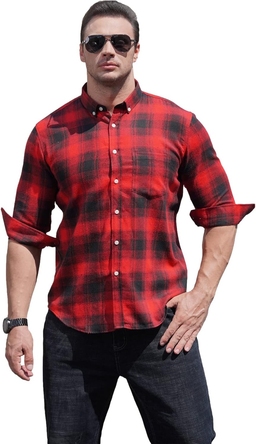 Mens Brushed Cotton Blend Long Sleeve Checked Flannel Shirt - S to 4XL1. Material: 62.3% Polyester, 33.1% Cotton, 4.6% Viscose.2. Design: classic check patterns and basic colors, button down collar, single patch chest pocket, rounded hem and button cuffs.3. In casual & fashion style, can be dressed up or fit underneath coat. Suitable for spring, autumn and winter.4. Size: S~4XL. Regular fit. Fits most body types. Please refer to the size chart in the product image and choose the proper size.