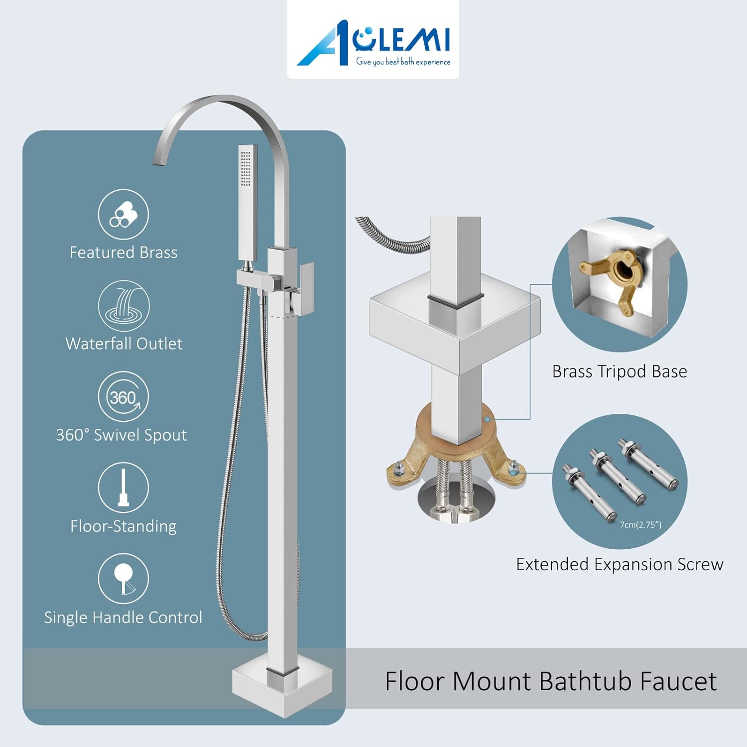 Product description Polish chrome bathtub faucet use solid brass,constructed from the high quality solid brass and polish chrome finished in corrosion and rust-resistant for durability and reliability.10’’ Rain shower system use high-quality stainless steel SUS304 construction ensuring durability and dependability .Polish Chrome Bathtub Faucet Details: Material: Brass Finish: Chrome Finished Installation: floor-mounted Flow Rate: Max 6 GPM (Tub Spout); 2.5 GPM(Handheld Shower) Shower hose length: 59”(150cm)10’’ Rain Shower System Details: Material: Stainless Steel SUS304 Finish: Polish Chrome Mounting: Wall Mount Top Showerhead: 10 inch (25cm) Spray Hose:150cm (59inch) 2 Functions: Overhead Shower and Handheld Shower