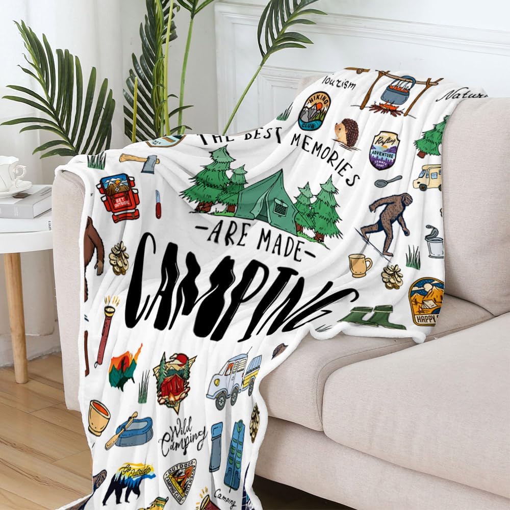 Bigfoot - Themed RV Blanket: Your Ideal Camping Partner Are you an enthusiastic RV camper with a love for the outdoors and a curiosity for the unknown? Our Bigfoot - themed RV blanket is here to enrich your camping journey. Wilderness - Inspired Design Featuring the mysterious Bigfoot, the blanket also showcases tents, mountains, a warm campfire, and cute forest animals. It creates a vivid outdoor scene, allowing you to feel the charm of the wild, whether you're on a mountain top or by a lakeside. Exceptional Quality Made from high - quality, durable fabric, this blanket is soft and warm. It can endure the rigors of travel and is easy to clean—just toss it in the washing machine. You can rely on it for countless camping trips. Multifunctional Use It's not only a regular blanket for warmth. You can use it as a picnic mat, a couch cover for a rustic look, or even a privacy screen. Its versatility makes it a must - have for your RV. Compact and Lightweight We know space in an RV is limited. This blanket folds into a small size, taking up little storage space. Its lightweight design ensures easy carrying, so you can enjoy its comfort anywhere during your adventures. A Perfect Gift Searching for a special present for an RV - loving friend? This Bigfoot - themed blanket combines practicality with an adventurous spirit. It's a gift that will be treasured for years. Enhance your RV camping experience now. Order yours today and embrace more exciting outdoor adventures!