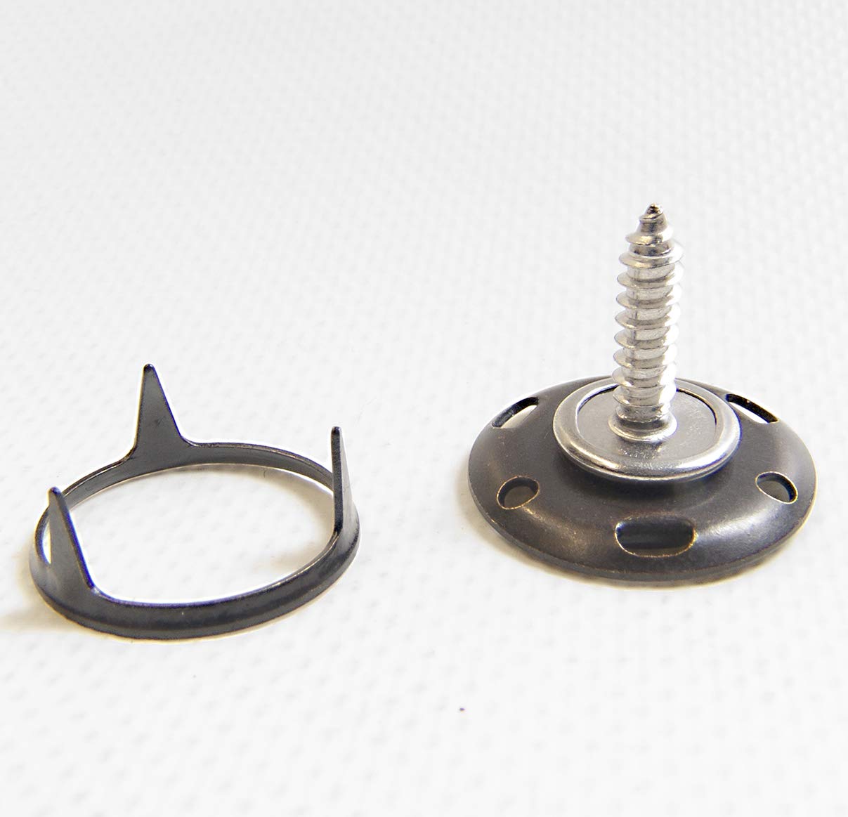 Carpet Fastener, 3 Pronged, Black Finish, w/ 5/8" Stainless Steel Screw Studs - 10 Each. Push pronged ring through carpet, place prongs through socket and bend prongs outward with a pair of pliers. Needle nose pliers work best. Attach stainless steel screw stud to deck with a #2 Philips screwdriver. Questions? Just send us a note.
