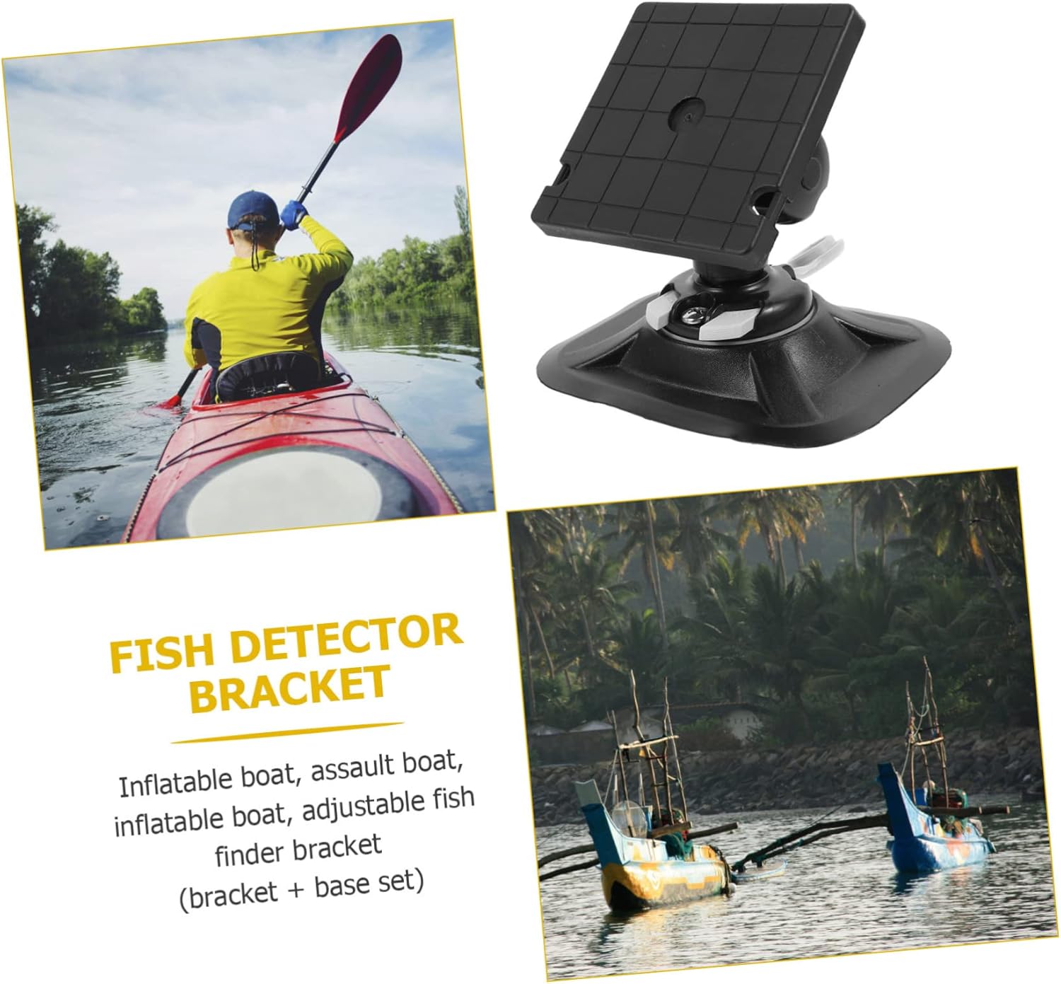 Package Include 1 finder holder 1 x base Features -Size: About 15.50X11.50X3.50cm / 6.09X4.52X1.38inch fish finder bracket with base. -Material: Nylon practical fish finder rack. -Color: Black nylon fish finder rack. -Universal mounting for a large variety of kayak products fish finder mount with base. -Made of nylon material which has light weight and high strength storage support for fish finder. - with base for fish finders and other marine electronics wear-resistant storage holder. -This rack provides greater clamping force for larger accessories practical fish finder holder. -The excellent workmanship will bring you a using experience fish finder holder.Goods Descriptionrack for fish finder This set will be the choice for you.fish finder accessories This fish finder holder with base makes easier to carry fish finder anywhere you need.adjustable fish finder rack That's because these products can satisfy your need.inflatable boat fish finder holder If you are looking for a professional and fish finder holder, then your research is over here