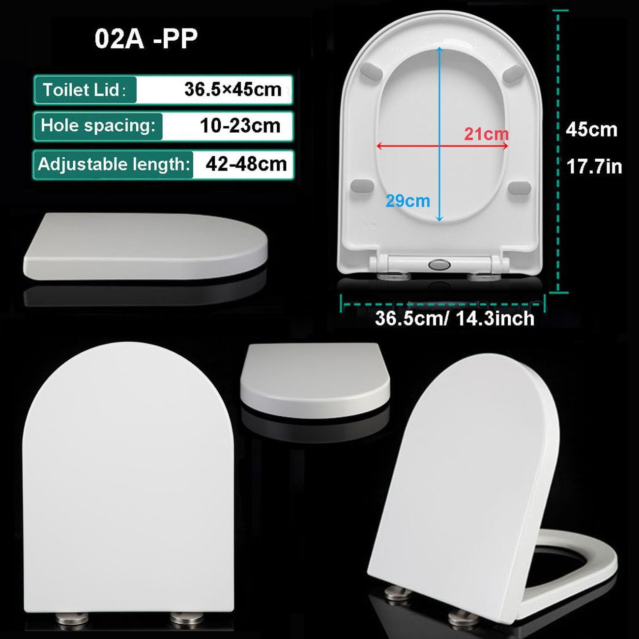 D Shaped Toilet SeatMaterial: Polypropylene MaterialColour: WhitePlease Check the Sof Your Toilet Before Purchase.Measure the Size of Your ToiletYou Can Check the Size of Our Product on the Picture to See If It is Suitable for Your Toilet.D Shaped Soft Close Toilet SeatSoft Close Toilet SeatSlow Close Toilet Seat WhiteTop Fixing Toilet SeatEasily to Install & RemoveQuick Release Toilet Seat▶If You Have Any Questions, Please Feel to Send Us an Email, We Will Reply You Within 24 Hours and Provide You with the Service to Ensure Satisfaction.