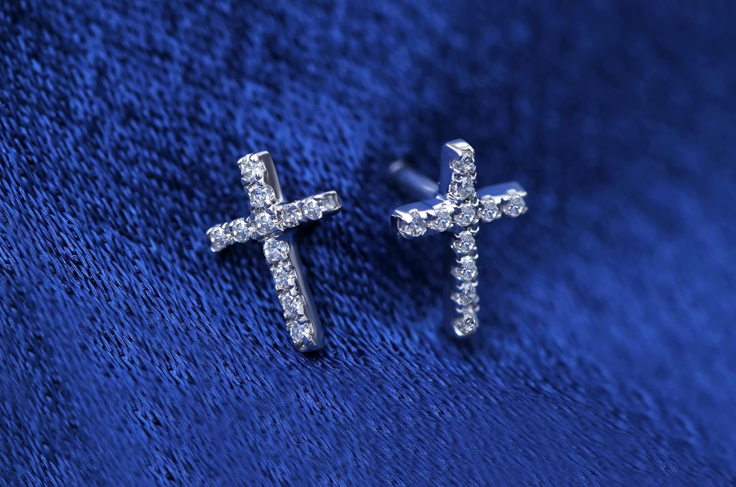 This lovely Charm Cross Stud Earrings features 0.05 Carat Round Natural White Diamond(s) in Prong Setting.All diamonds are sparkling.All our products will come with a complimentary jewelry box for safekeeping and presentation.SKU # SS10722-925-P