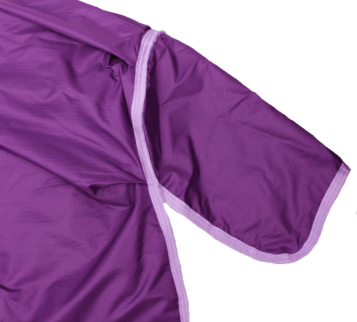 Our Deluxe Series 600D Ripstop Waterproof Medium Weight Winter Turnout Horse Blanket was designed to offer a highquality but reasonably priced turnout blanket with the classic features most sought after by horse owners a tail cover shoulder gussets for more free and uninhibited movement a fleece wither protector to prevent mane and wither damagerubbing elastic leg straps and crossed belly surcingles These blankets also feature a 600D ripstop nylon outer shell which is perfect for turnout horses that are rough on their blankets or for horses whos stable or pasture mates like to pull on or damage blankets These blankets were also designed to be adjustable and fit other equines such as donkeys and mules and have sizing in Pony and Cob sizes as well as traditional horse sizing Waterproof Construction this blanket is made from a waterproof nylon material covered in a teflon coating These blankets are guaranteed to be fully waterproof unless the blanket is rippedtorn or the teflon coating is damaged through improper washing or cleaning or abuse of the blanket Sizing Information This turnout sheet is sized in the same manner that you will size any other horse blanket by measuring in inches from the center of your horses chest to the end of your horses rump If your horse is inbetween sizes we recommend sizing up to the closest available size Product Information Blanket Style Turnout Blanket Waterproof Yes Breathable Yes Weight Medium Weight Material Nylon Denier 600D Ripstop Yes Tail Cover Yes Wither Protector Yes Shoulder Gussets Yes Polyfil 250g Inner Lining 210T Nylon Belly Closure Crossed Surgincles Leg Straps Crossed Elastic Colors Available Purple Black and Hunter Green