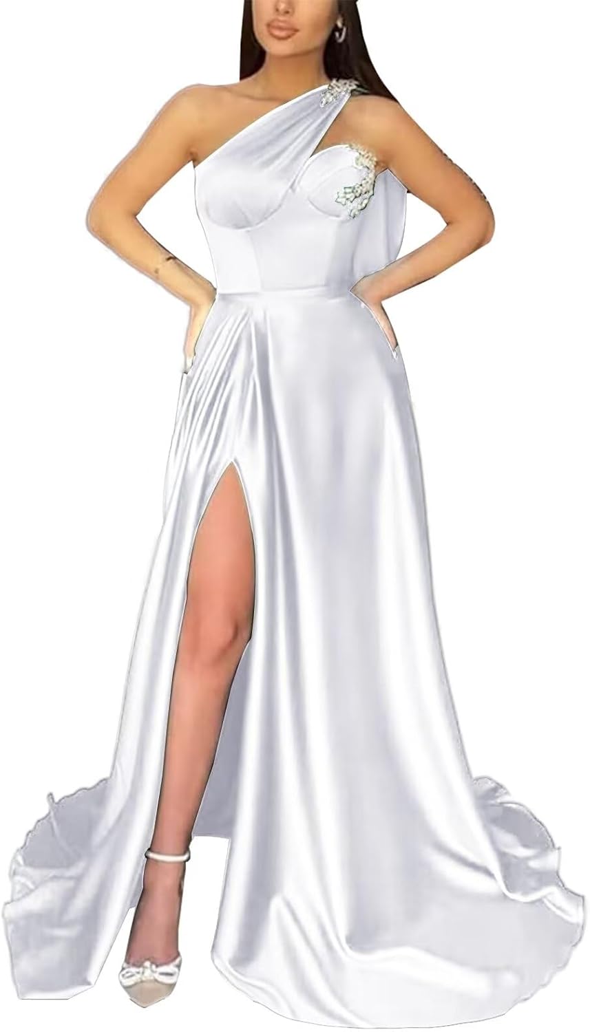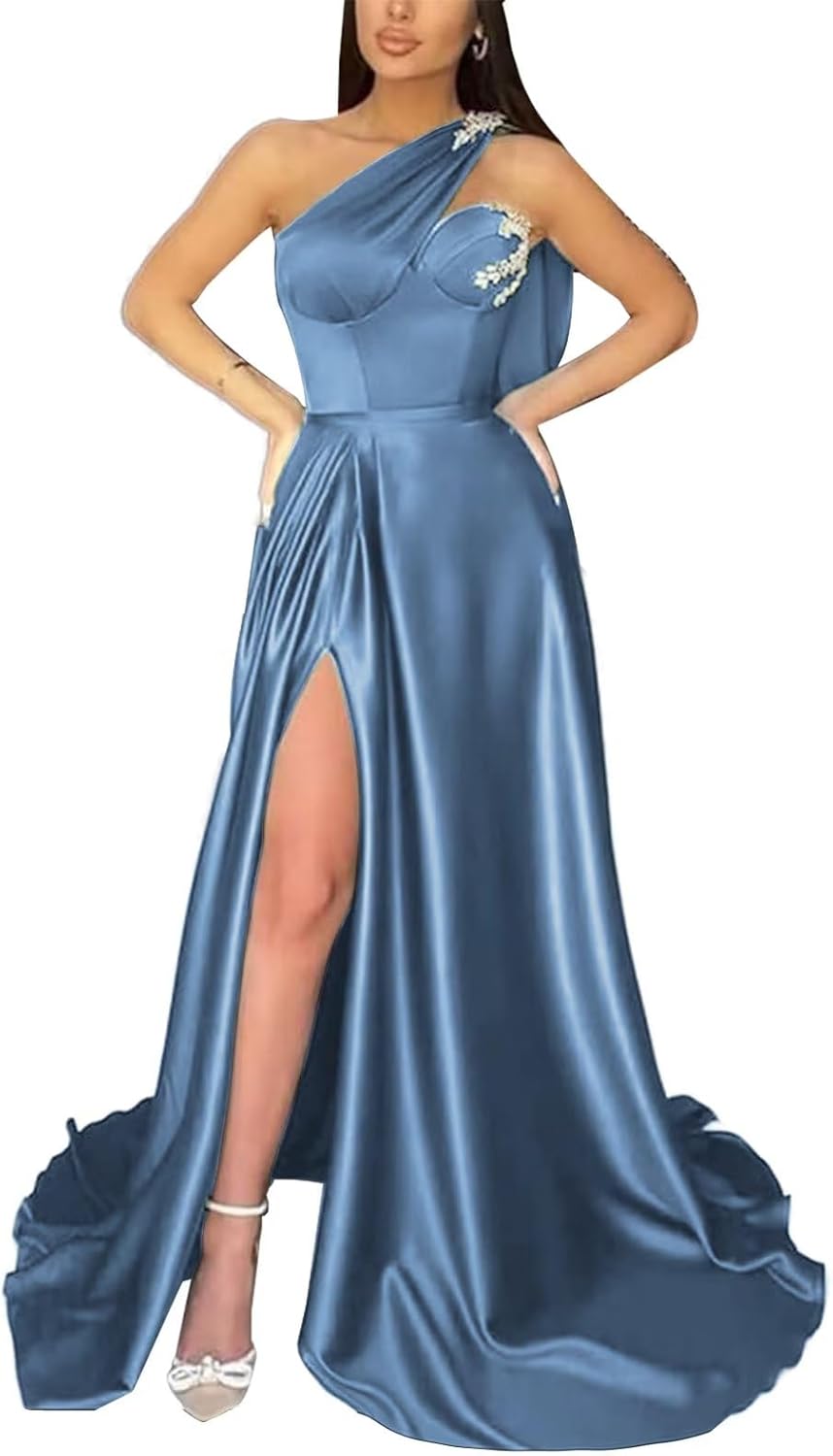 " One Shoulder A-Line Prom Dresses for Women Long Satin Cocktail Dress with Slit Formal Lace Applique Evening Gowns " Among the numerous types of clothing we have produced throughout the years are evening gowns, formal dresses, prom dresses, bridesmaid dresses, wedding dresses, and formal dresses. You can count on us to be delighted to help. For more information, please refer to the corresponding style details. How to Choose a Size: Measure your body and compare it to our size chart(unit:inches). US2 Bust:32.5 Waist:25.5 Hips:35.75 Hollow to Floor:58 US4 Bust:33.5 Waist:26.5 Hips:36.75 Hollow to Floor:58 US6 Bust:34.5 Waist:27.5 Hips:37.75 Hollow to Floor:59 US8 Bust:35.5 Waist:28.5 Hips:38.75 Hollow to Floor:59 US10 Bust:36.5 Waist:29.5 Hips:39.75 Hollow to Floor:60 US12 Bust:38 Waist:31 Hips:41.25 Hollow to Floor:60 US14 Bust:39.5 Waist:32.5 Hips:43 Hollow to Floor:61 US16 Bust:41 Waist:34 Hips:44.25 Hollow to Floor:61 US18 Bust: 45 Waist: 38.5 Hips: 47.5 Hollow to Floor: 61 US20 Bust: 47 Waist: 40.75 Hips: 49.5 Hollow to Floor: 61 US22 Bust: 49 Waist: 43 Hips: 51.5 Hollow to Floor: 61 US24 Bust: 51 Waist: 45.25 Hips: 53.5 Hollow to Floor: 61 US26 Bust: 53 Waist: 47.5 Hips: 55.5 Hollow to Floor: 61 Custom-Made Service: It is possible to have a specialized service. As soon as you place an order, please fill out the following format and email us to let us know. ●Bust = ___inches. ●Waist = ___inches. ●Hips = ___inches. ●Heels' Height =___inches. ●Your height(with head)=___inches. If you have any other question,please tell us freely, and we are always at your service!