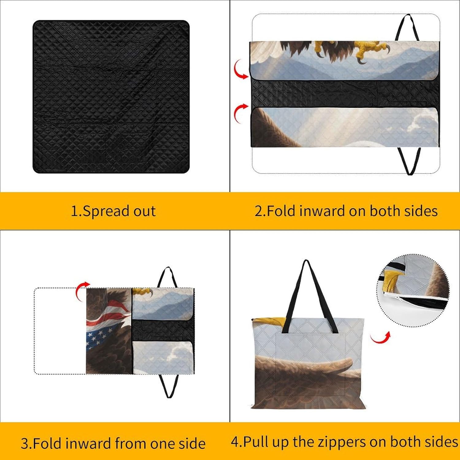 Elevate Your Outdoor Experience with the Versatile Picnic BlanketCollapsible Picnic Mat Picnic Essentials Convertible Tote Bag Portable Rug for Picnics Beach Essentials Camping Pad Cute Picnic Blanket Bag Foldable Travel Mat Large Family Picnic Blanket Outdoor Picnic MatsSuperior Protection and ComfortForget worrying about wet grass or prickly sand. Our blanket features a smart 3-layer construction. The top layer is soft to the touch, while the middle padding provides just the right amount of cushioning against hard ground. The bottom layer, made from durable 210D Oxford cloth, is completely waterproof and acts as a barrier against moisture and dirt, ensuring you stay clean and dry.Designed for the Modern ExplorerWe understand that space is precious when you're on the move. That's why our blanket features an ingenious foldable design. In seconds, it transforms from a full-size mat into a compact carry bag with a handle. This makes it incredibly easy to transport and store. But the innovation doesn't stop there; the carry bag itself is designed to be used as a sturdy shopping tote, making this blanket a true 2-in-1 essential for eco-conscious shoppers.Choose Your Perfect Size:59 x 40 inches / 150 x 100cm: Ideal for couples or solo use.59 x 59 inches / 150 x 150cm: Perfect for a small family or small group of friends.78.8 x 78.8 inches / 200 x 200cm: Our large size, perfect for family gatherings and group outings.Whether you're planning a beach vacation, a camping trip, a hike, or a simple day at the park, this cute picnic blanket is your reliable partner for comfort and convenience. Pack it, carry it, and enjoy the outdoors without compromise.