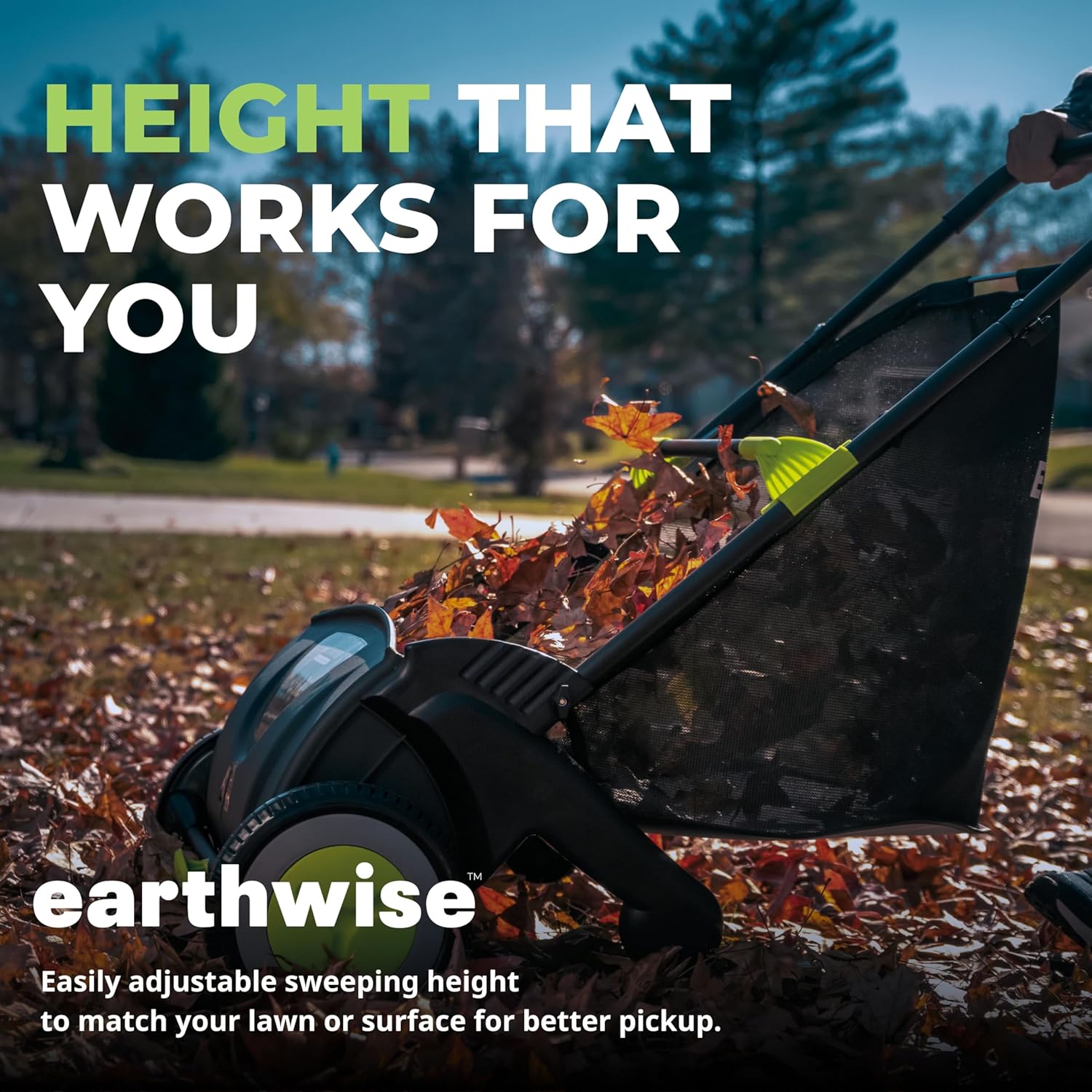 Don't waste your time and energy by useing a rake to clear away leaves, grass clippings, debris, even pine cones. With a lawn sweeper, the job becomes much easier on you and your lawn. Clean your lawn with Earthwise large 21" lawn sweeper. The large 21-inch sweeping width two brushes per section is great for tackleing grass clippings, leaves, and debris with ease. Quickly tailor the sweeper to suit the terrain with adjustable height control – ideal for transitioning from lawns to patios, sidewalks and driveways. Tirering/Back-breaking lawn cleanups are a thing of the past; set the rake aside this year and go with Earthwise Sweep it! ATTENTION: Make sure the height of the brushes are adjusted to your lawn for optimum sweeping performance.