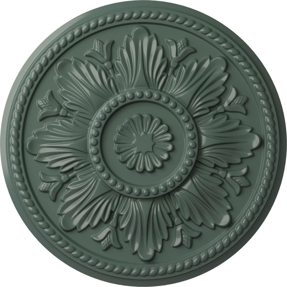 Our ceiling medallion collections are modeled after original historical patterns and designs. Our artisans then hand carve an original piece. Being hand carved each piece is richly detailed with deep relief, sharp lines, and a truly unique touch. That master piece is then used to create a mould master. Once the mould master is created we use our high density Urethane foam to form each medallion. The finished look is a beautifully detailed, light weight, solid construction, focal piece. The resemblance to original plaster medallions is achieved only by using our high density Urethane and not vacuum formed, "plastic" type medallions. - medallions can be cut using standard woodworking tools to add a hole for electrical or a ceiling Fan canopy. - medallions are light weight for easy installation. - they are fully primed and ready for your paint. If you have any questions feel free to ask. These are in stock and available for immediate shipment.