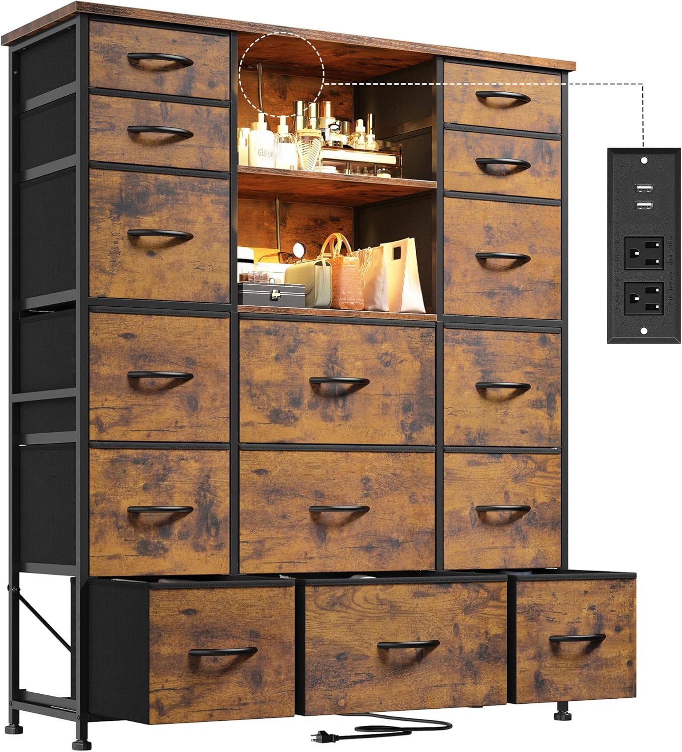 | Included Components | 1 * 15 Drawer Dresser, 1 * Outlet, 1 * Phillips screwdriver & 1 * Hexagonal L-shaped screwdriver & other screw accessories, 2 * Anti-tipping & 4 * Adjustable Feet, 2 * LED Strip Light |