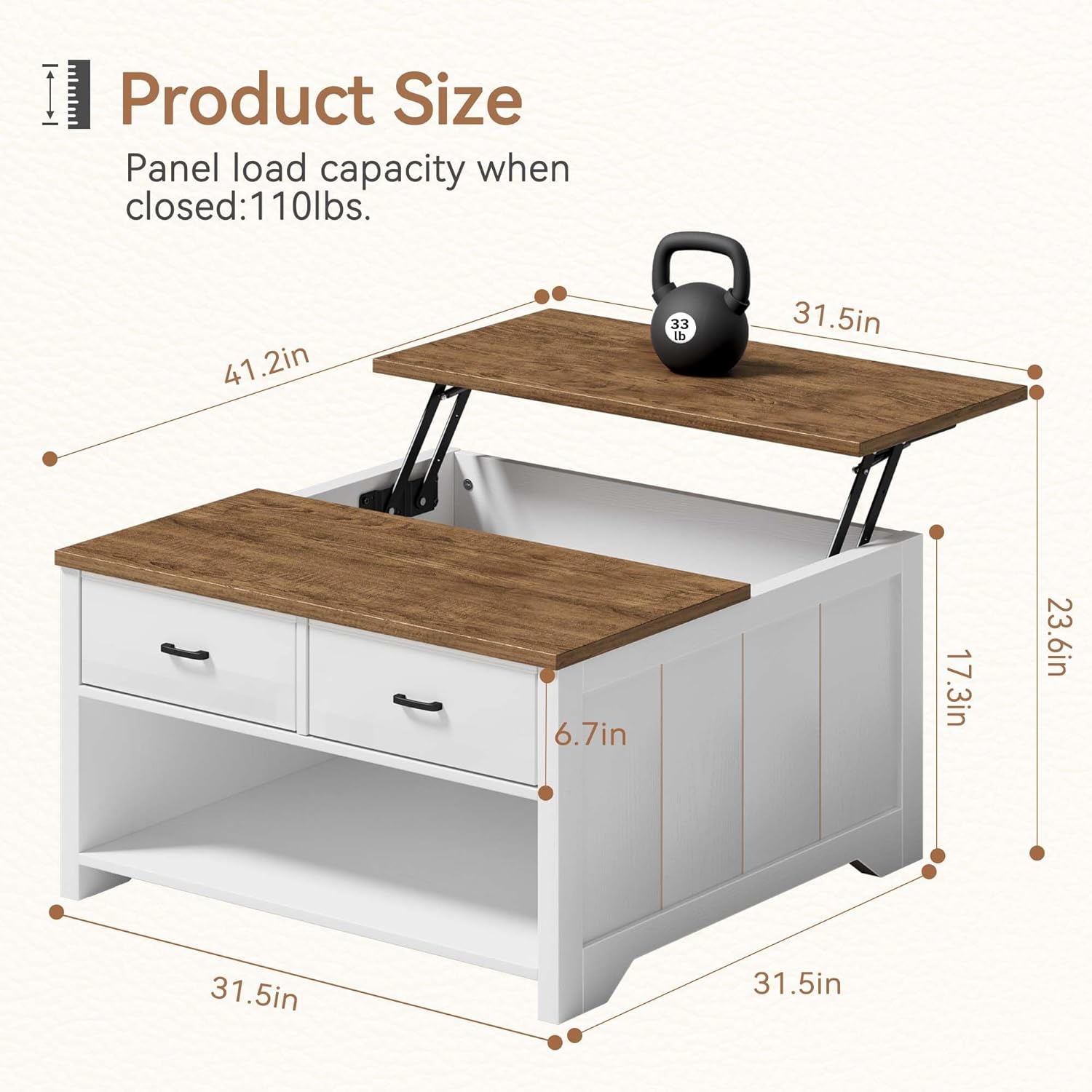 | Included Components | Assembly Tools, Assembly Guide, Hardware for Lift-Top Mechanism, Drawer Hardware, 2 Fabric Drawers, 1 Open Shelf |