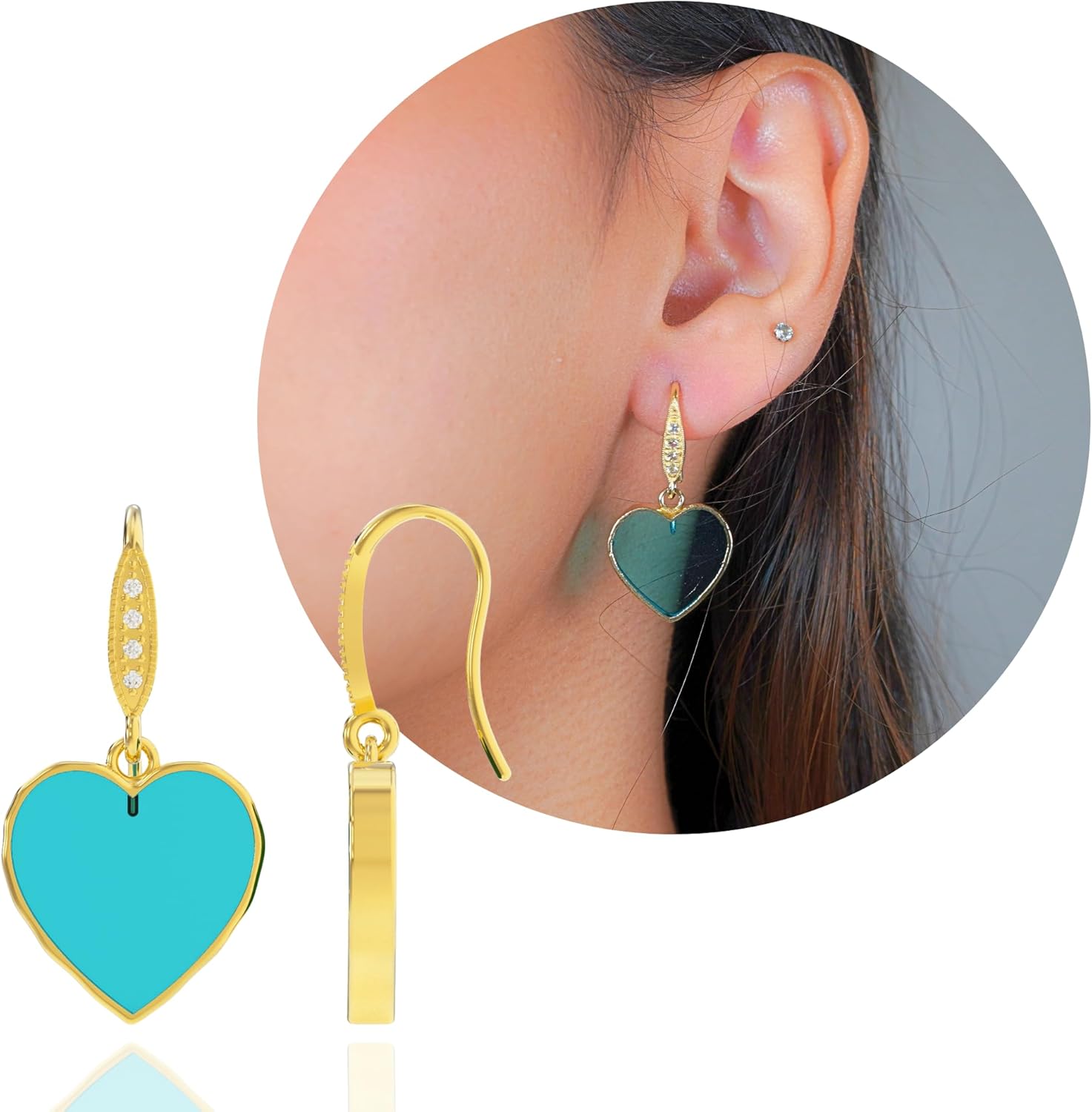 Gold Heart-Shaped Drop Earrings for Mom - Hydro Gemstone with Gold Bezel Setting, Personalized Birthstone Gift for Women. Elevate your gift-giving with these stunning Gold Heart-Shaped Drop Earrings, a perfect way to show your love for Mom. Crafted with a luxurious gold finish, each earring features a delicate drop design with a smaller gold heart charm and a larger heart-shaped hydro gemstone, beautifully set in a gold bezel for a secure and elegant look. The hydro gemstone, with its pearlescent glow, mimics the beauty of a birthstone, adding a personalized touch that reflects her unique month. These earrings are presented in Abshel brand premium packaging, including a soft velvet pouch and a luxurious box, with an anti-tarnish slip to keep them radiant. Ideal for Mother’s Day, birthdays, or any special occasion, these earrings are a timeless and heartfelt gift for the special woman in your life.