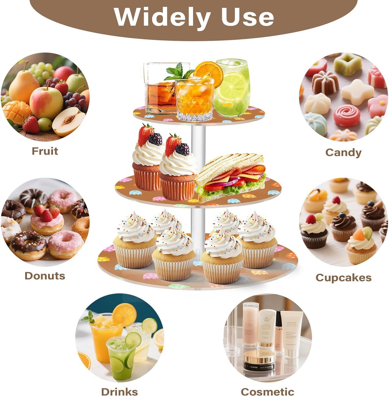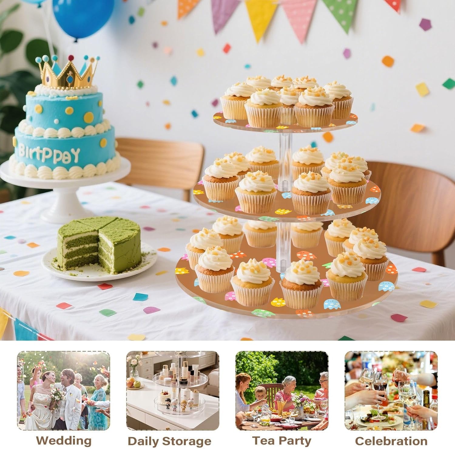 3 tiers round cupcake stand,acrylic cake tower stand holder macaron display rack cookie candy buffet desserts platter with non-slip and stable base for wedding, birthday, theme party. Due to the difference between different monitors,the picture may not reflect the actual color of the item,Please allow the slight color difference! We always doing our best to provide the best service and reliable products for every customer,Thank you very much! Have a good day!