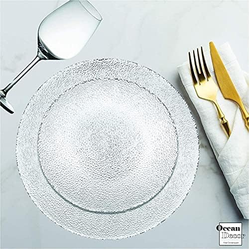 Dine in style with this set of clear glass dishes from Ocean Decor. With their pretty textured patterns, this dinnerware set gives you the modern clear glass look with an added elegance that makes them stand out on your table. Because they are clear, they match any color scheme - so you can use them for all your dinner and holiday parties and have a different look each time! They are crafted from tempered glass, so you don't have to worry about your plates and bowls shattering from hot food, and are dishwasher safe for a super simple cleanup. Complete 12 piece set includes four large dinner plates, four salad plates, and four soup bowls. Make these glass dishes yours today!