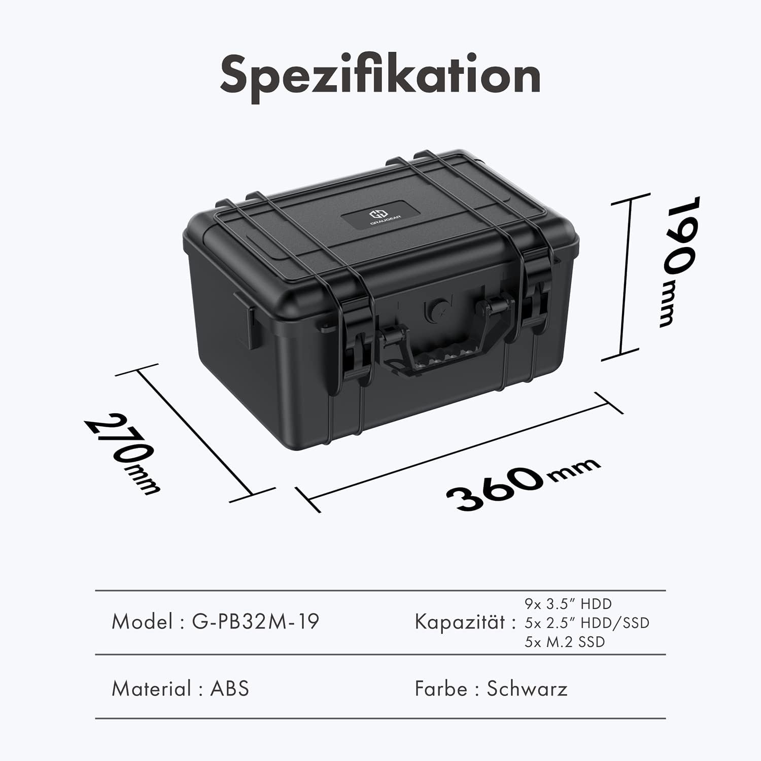 GRAUGEAR Protective case for hard drives | 3.5" & 2.5" & M.2 HDD/SSDs | Hard drive case up to 19 data carriers | Shockproof, heat-resistant, waterproof | Safe storage of data | G-PB32M-19