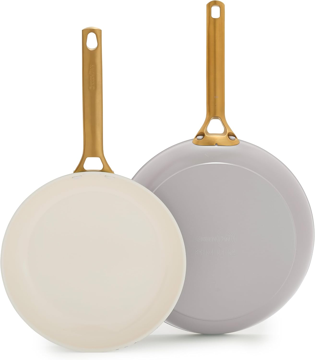 Add style with substance to every meal with this eye-catching frypan set featuring a 10” that’s the perfect go-to for daily use and a 12” that’s ideal for big cuts of meat and family-sized portions. GreenPan has modernized their bestselling collection with subtle architectural details inspired by neoclassical design that add a stunning contemporary statement in any kitchen. As innovative as they are dazzling, these pans are crafted from ultra-durable hard anodized aluminum for remarkable durability and incredible scratch resistance. Each pan features GreenPan’s cutting-edge Thermolon™ 9G ceramic nonstick for ultimate nonstick performance, remarkable release, and unbelievable durability. The first NSF®-certified ceramic nonstick, it’s infused with layers of diamonds for 10x longer lasting performance than classic ceramic nonstick and free of PFAS for effortless toxin-free cooking. The streamlined gold-tone stainless steel handles add an eye-catching contrast and they’re angled so the frypans can stack easily and save space. Designed for maximum versatility, these pans are dishwasher safe, oven and broiler safe up to 600˚F, and optimized for all stovetops expect induction. Bring refined dining and elegant cooking home with Reserve Pro.