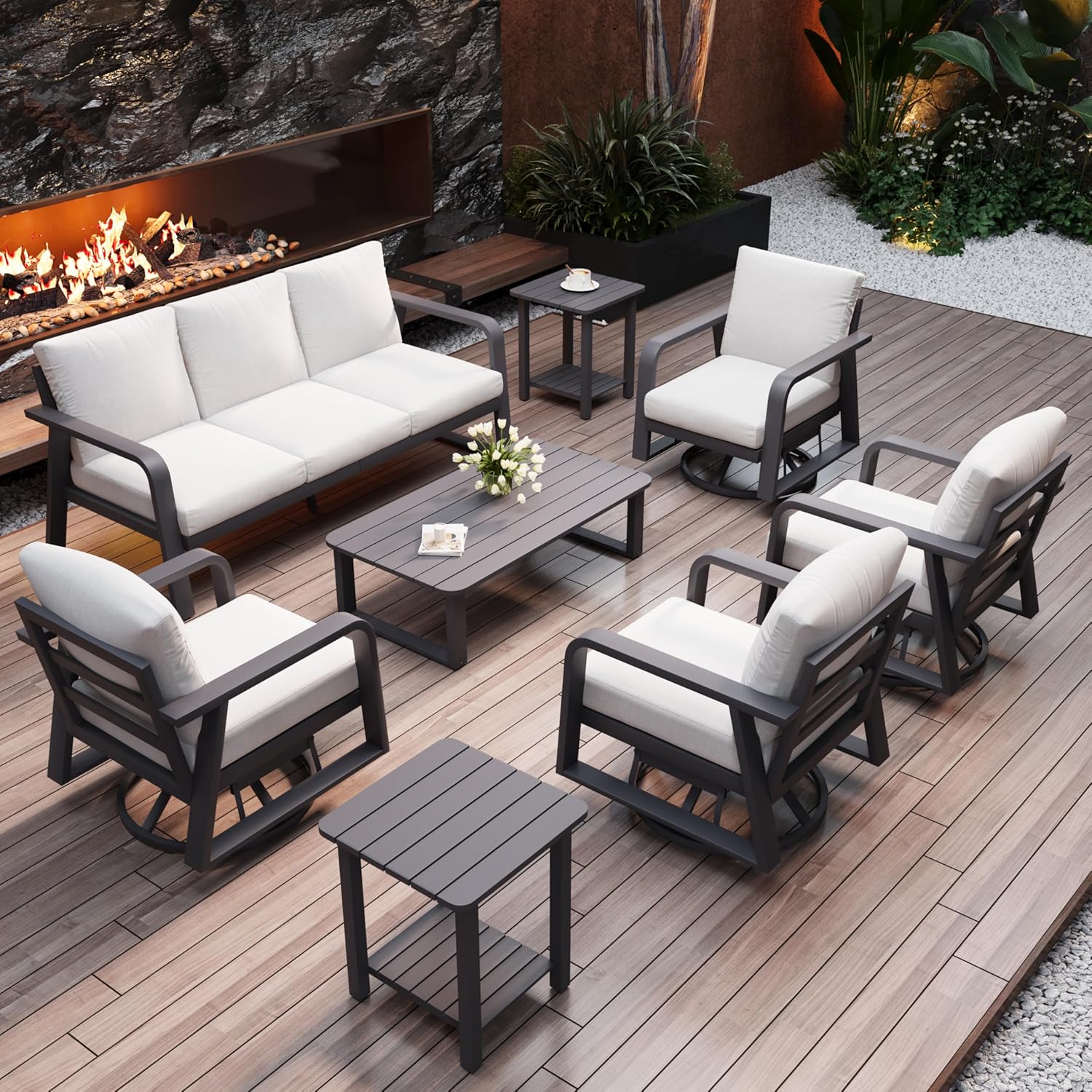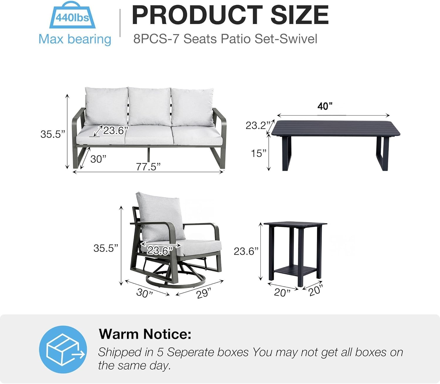 | Item Type Name | KEIKI 8-Piece Aluminum Patio Conversation Furniture Set with 360 Swivel Rocking Chairs Outdoor Sofa Coffee Table Side Tables Memory Foam Cushions for Backyard Garden Deck Dark Grey |