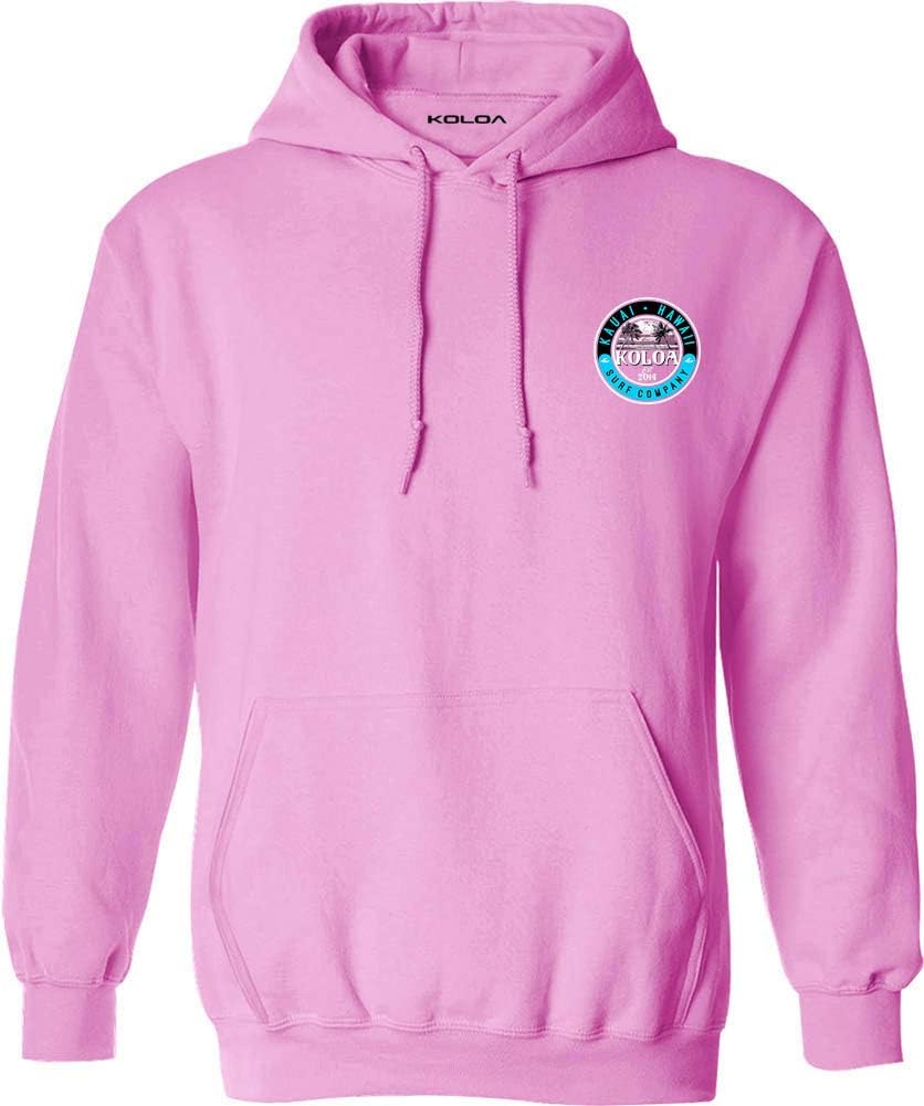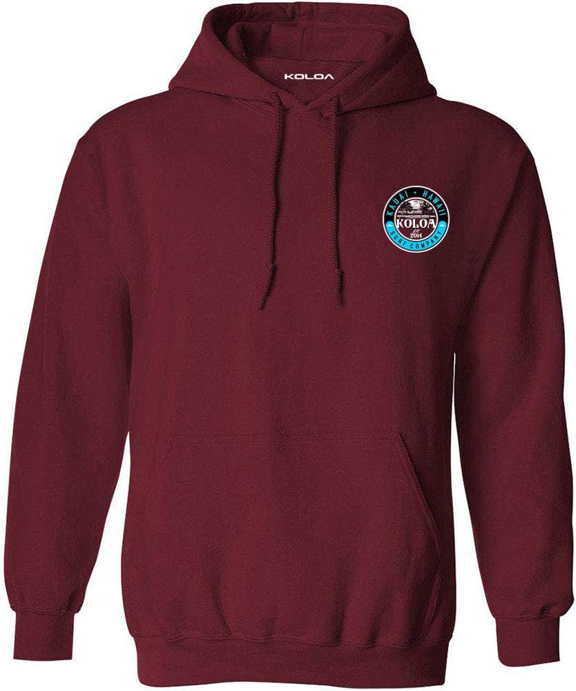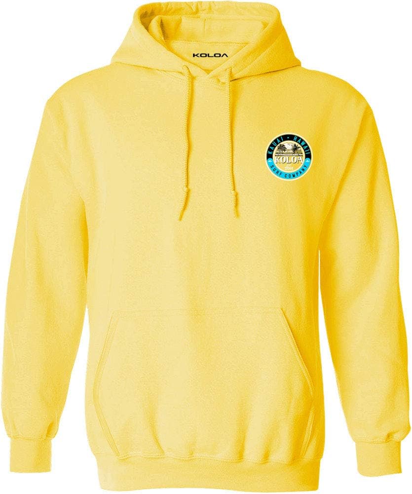 Koloa Surf Mens Kauai Palms Logo Pullover Hoodies. Cozy sweats in our core weight. 7.8-8.0 ounce, 50/50 cotton/poly fleece. Air jet yarn for a soft, pill-resistant finish. Proudly printed in the US.