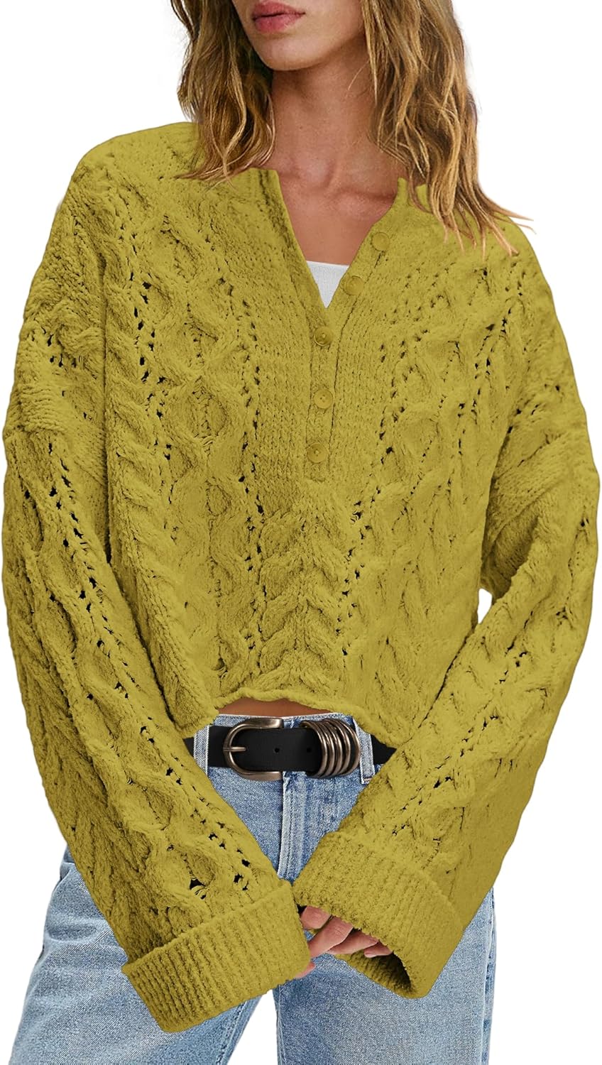 LAMISSCHE Cable Knit Sweater Women Cropped Sweaters Oversized Fall Sweaters Long Sleeve Half Button Down PulloverPackage Includes: 1 x Sweater.Notice1.Please allow 1-2'' color and size difference due to different display and manual measurement.
