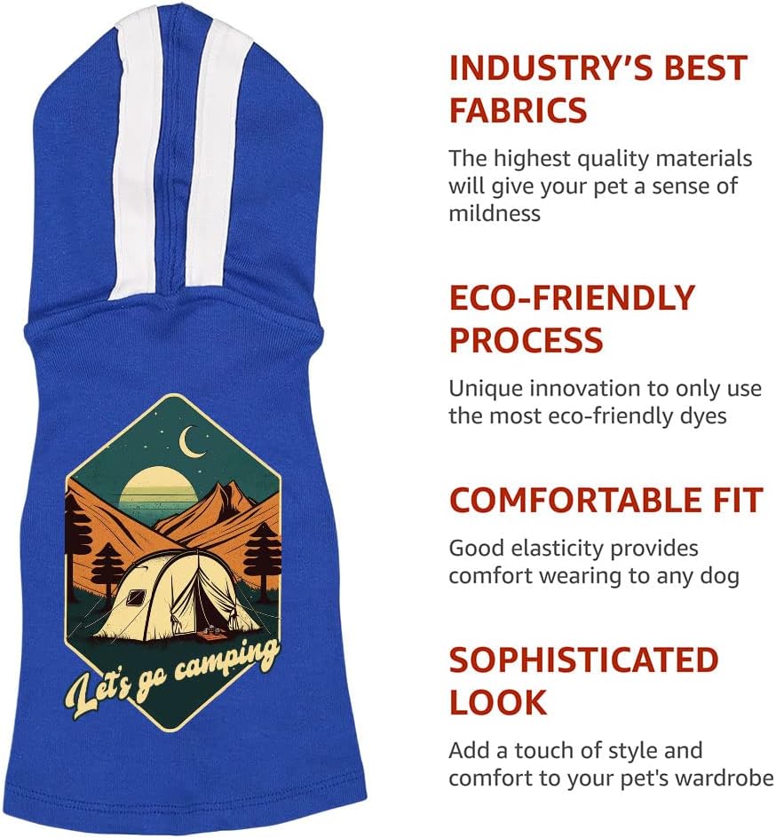 Make sure your fur babies are always warm and comfy. Crafted using a blend of breathable cotton and polyester, Let's Go Camping Dog Shirt with Hoodie helps retain your dog’s body heat amidst the cold breeze of autumn and winter, or when you take them outside on a chilly night. Soft and stretchy, Retro Dog Hoodie will feel like an incredibly comfortable whole-body hug, which may help your dog relax when they’re feeling stressed.