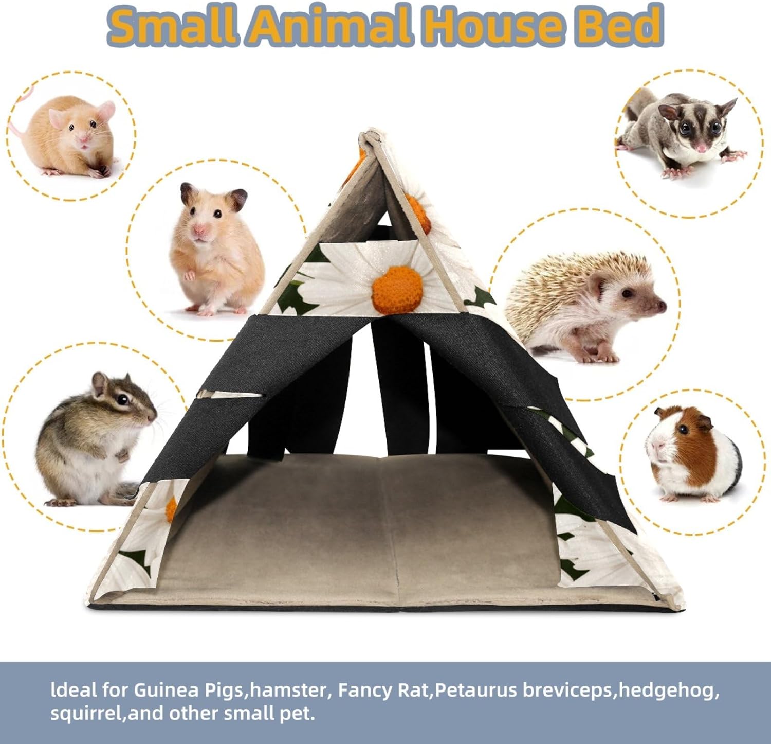 This "Little Hamster Home" is a series suitable for small pets such as hamsters, guinea pigs, rabbits, ferrets, mice, hedgehogs, and chinchillas. It is made of high-quality short velvet fabric and provides a private, warm, and comfortable hiding place, allowing your cute little animals to feel safe. Your baby can play, rest, hide, sleep, or engage in other activities in this safe haven, while also being a warm home. The size of 'Little Hamster House' is 10.2 inches long, 12 inches wide, and 8.5 inches high. The bottom is a foldable PP board, so when not in use, the hamster nest can be folded up without taking up space. By covering it with a layer of blankets, this cabin can become a comfortable hiding place. This small animal bed is made of high-quality soft short velvet fabric, with a sturdy structure that remains stable on the ground and will not collapse on its own. The ultra soft fabric makes your baby feel comfortable and warm in their own cabin. Plush curtains provide a private, warm, and comfortable resting place for your pets, allowing them to feel secure. Specially designed for guinea pigs, hedgehogs, golden bears, sugar kangaroos, hamsters, squirrels, chinchillas, small rabbits, flying dragons, and other small animals. When accidents cannot be avoided, there is no need to worry! This guinea pig bed can be hand washed and machine washed, suitable for air drying.