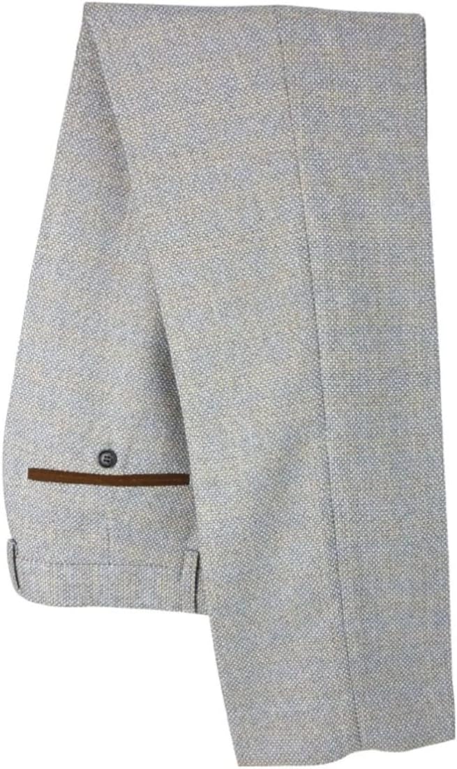 Men’s Tweed Textured Retro Tailored Fit Cream & Grey Suit Trousers Size 40
