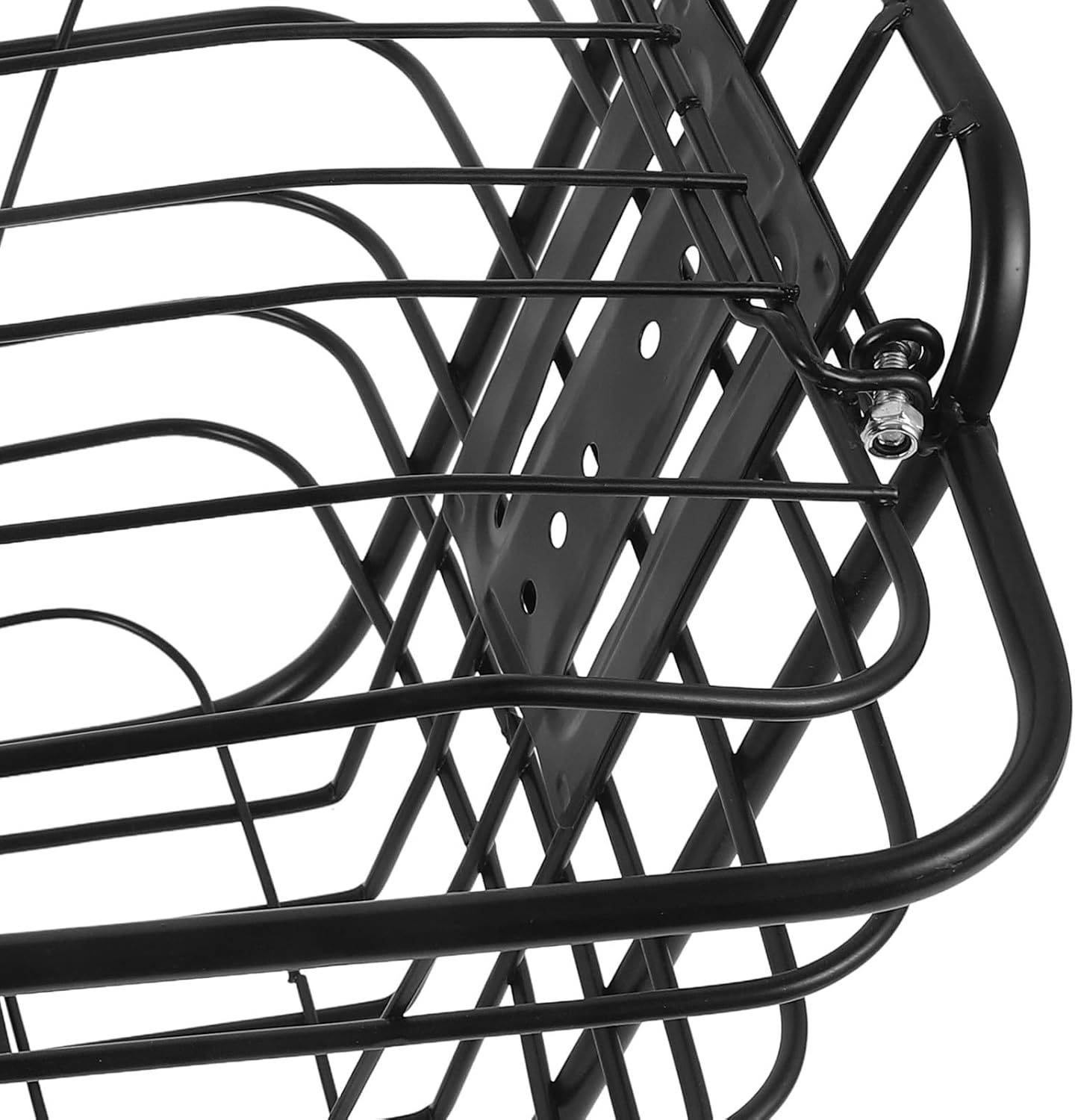 Package Include 1 x bicycle basket Characteristics -Color:Black -Material:Iron -Product Info:Car basket storage basket -Size:32.00X30.50X23.50cm/12.58X11.99X9.24in -The front basket design offers easy access to your items, making it incredibly convenient for quick trips to the store or daily commutes, enhancing your overall riding experience bike with basket. -This versatile storage solution is for electric bikes, bicycles, and a variety of other vehicles, making it an ideal choice for anyone in need of reliable and spacious storage bicycle cargo rack. -This storage basket features a reinforced and enlarged design, providing ample space to accommodate all your storage needs, whether for groceries, personal items, or other essentials cargo ebike. -Equipped with a secure lid, this basket prevents items from falling out, ensuring that your valuable possessions remain safe and intact during your journey bike rear rack. -Constructed from iron material, this basket ensures durability and safety, giving you peace of mind that your belongings are well-protected.Goods Informationscooter basket for adults It is for electric bikes, bicycles, and more.bicycle cargo rack Discover the convenience with our bike basket.scooter bike The sturdy iron material ensures durability and safety for your belongings. bicycle basket Designed with a reinforced, enlarged structure, it offers ample storage space for all your essentials