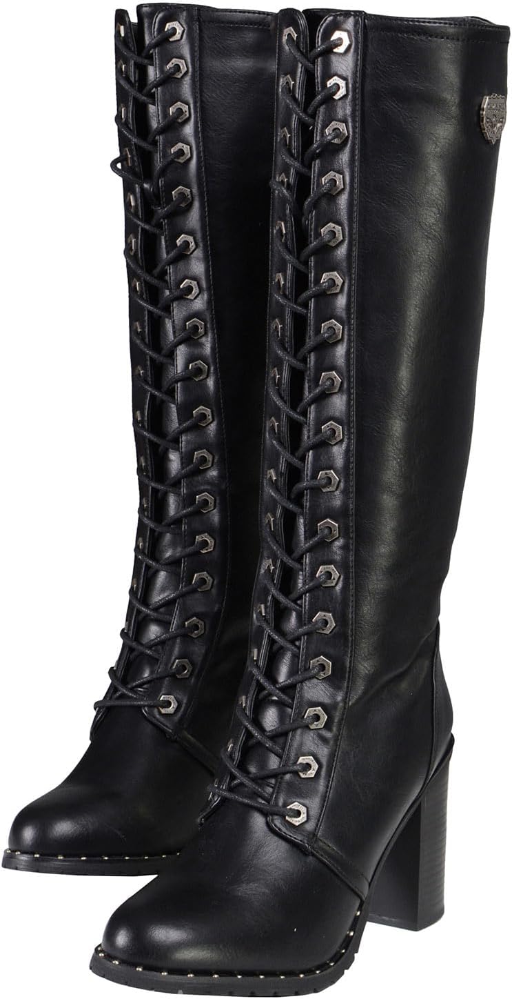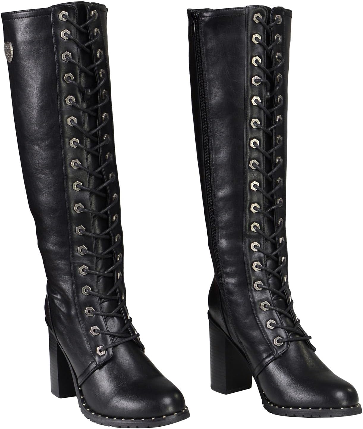 Milwaukee Leather Women's Black Lace-Up Tall Motorcycle Fashion Boots X9442 XBL9442 Features Made of Synthetic Leather Upper Tall Boots Anti-Slip Bottom Lace-Up with Inside Zipper for Easy on and off Wear Studded Outsole Milwaukee Signature Hardware