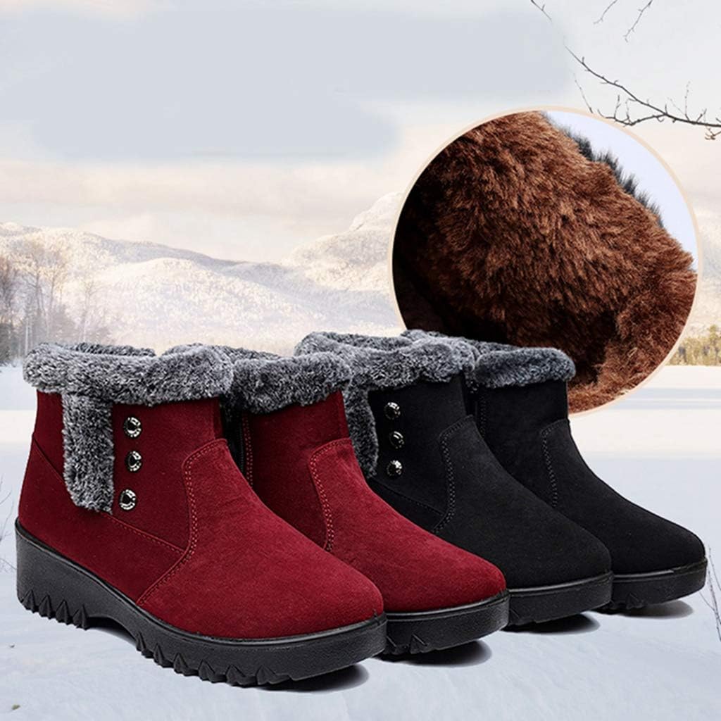 Women's Winter Fur Snow Ankle Boots Waterproof Platform Side Zipper Anti-slip Warm Snow Short Booties Size Chart:Size 4 US = EU34 = Heel to Toe 22.0cm/8.66"Size 4.5 US = EU35 =Heel to Toe 22.5cm/8.86"Size 5 US = EU36 = Heel to Toe 23cm/9.06"Size 6 US = EU37 = Heel to Toe 23.5cm/9.25"Size 7 US = EU38 = Heel to Toe 24cm/9.45"Size 8 US = EU39 = Heel to Toe 24.5cm/9.65"Size 8.5 US = EU40 = Heel to Toe 25cm/9.84"Size 9 US = EU41 = Heel to Toe 25.5cm/10.04"Size 10 US = EU42 = Heel to Toe 26cm/10.24"Size 11 US = EU43 = Heel to Toe 26.5cm/10.43"Use your length and width measurements to find your shoe size on the above size chart. If your foot is fat or wide, please select a bigger size up.PERFECT ITEM FEATURES:☛Item Type: Snow Boots☛Main Material: High Quality Faux Suede Upper; Comfort Warm Fur Lining; Non-skid Rubber sole.☛Closure_type: Side Zipper Closure☛toe_style: Round-toe☛Heel Height: Heel Height 0.98 inch☛Width: Medium (BM)☛Season: Winter/Cold Weather☛Color: Multiple colors optional☛Occasion Lifestyle: Fashion,Classic,Casual.☛ ☛