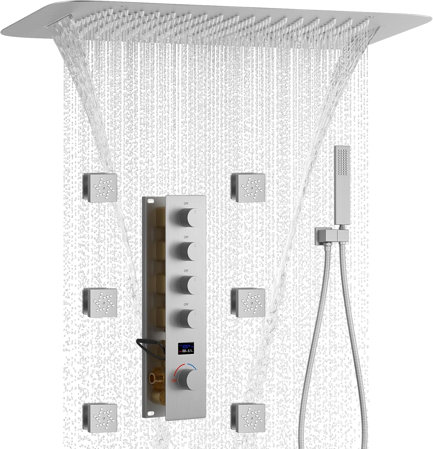 | Included Components | 16X24 Inch Ceiling Mounted Shower Head, Body Jets, Digital Display Shower Valve, Hnadheld Spray |