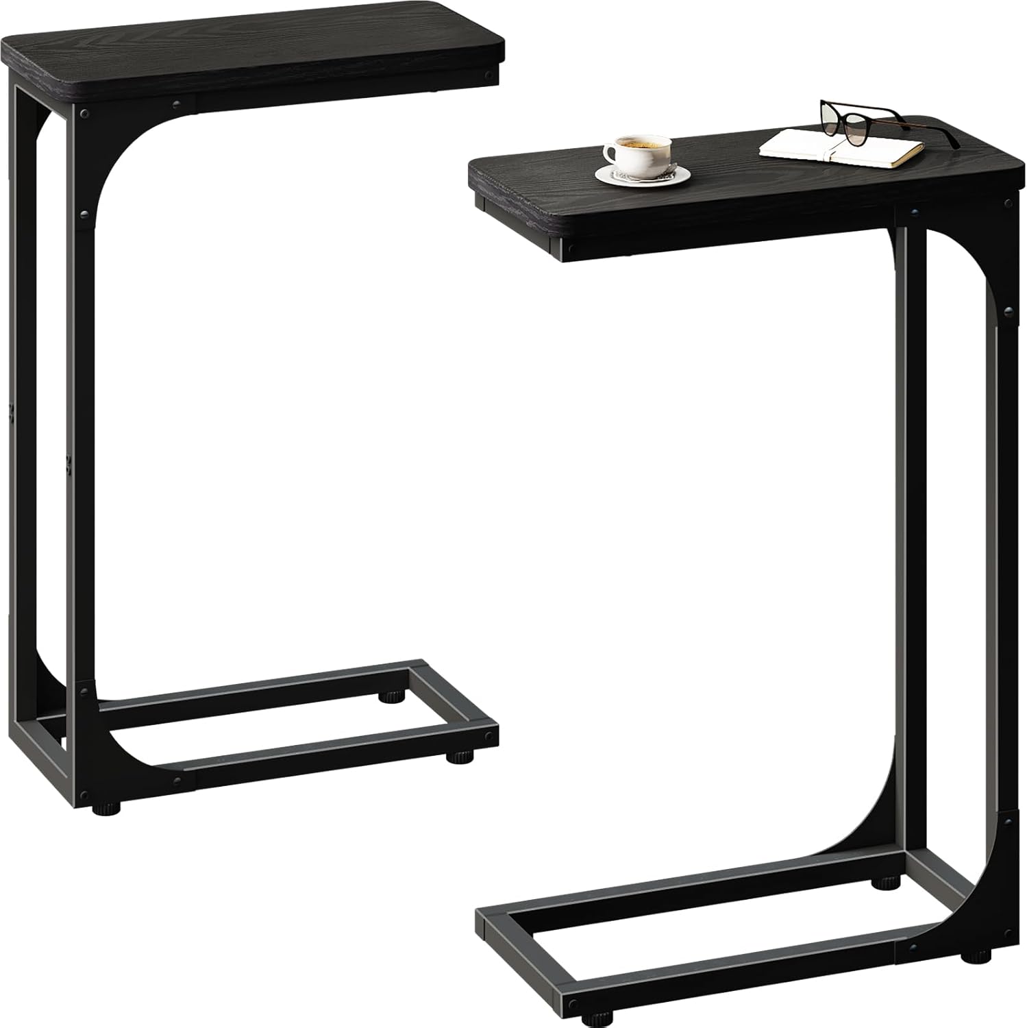 QEEIG C Shaped Side Table Set of 2 Living Room Sets Couch Tray Tables Small Farmhouse 11.8 inch Width, Rustic Brown (017A-30BN)