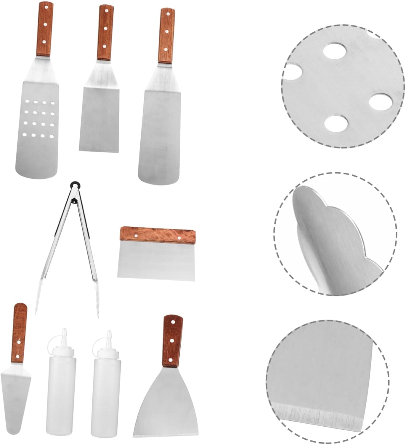 Package List 1 Set/9pcs x Barbecue Tools Features -Product Info:Stainless steel barbecue tools - Size: About 21.00X9.50X1.50cm/8.25X3.73X0.59inch BBQ Stainless Steel Utensils. - Material: Stainless steel, wood BBQ Griddle Tool. - Made of stainless steel and wood materials, it has a BBQ Griddle Utensils. - Barbecue tools with wooden handles bring great convenience to your use Stainless Steel Utensils for BBQ. - With light weight and compact size design, it is convenient to carry and store Barbecue Tool Kit. - ColorSilver BBQ Griddle Shovels - The package includes 9 useful BBQ tools to meet your different needs BBQ Griddle BBQ Griddle. - These stainless steel utensils can be used not only for outdoor barbecues, but also for home cooking BBQ Griddle Supplies.Goods DescriptionBBQ Griddle BBQ Griddle This item is a set of professional barbecue tools.BBQ Griddle Supplies Besides, they can be used in restaurants, food stores, home, etc.BBQ Griddle Shovels Made from material, they are durable and practical for use.BBQ Griddle Utensils Lightweight and easy to carry and cover your most for outdoor barbecues