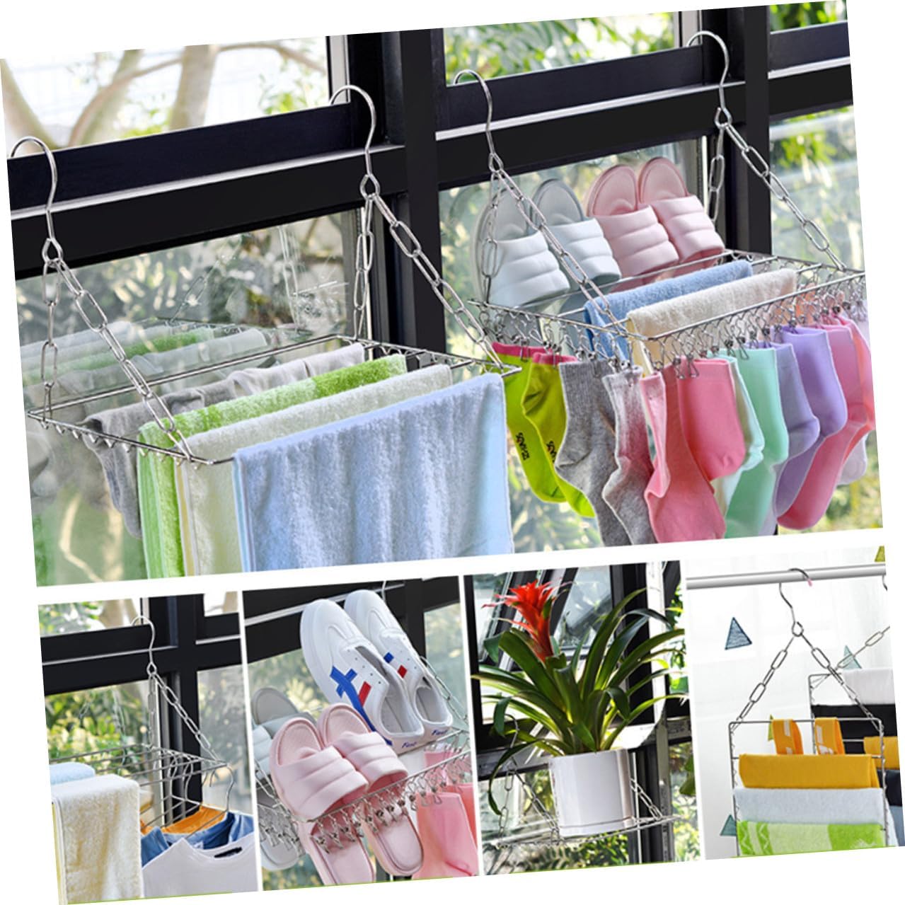 Package Include 1 x Drying Rack Characteristics -Product Info:Balcony sock drying rack - Material: Stainless steel. - Color: Silver. - Adjustable design for easy storage and space-saving clothes dry rack. - It is made of stainless steel, which is and anti-rust, sturdy and not easy to be out of shape drying racks. - It has large storage capacity, so can meet your daily needs clothing dry rack. - Suitable for inside or outside use, this hanging rack can be utilized in the laundry room, or on your balcony clothes drying racks. - Because of this special design, it prevents from falling off clothing racks for drying clothes.Goods Informationdrying racks It is perfect for hanging socks, towels, etc.pants hangers material can ensure its durability and practicability.multi-functional drying rod This item is a multifunctional sock hanger, manufactured with premium stainless steel material, so that it can serve you for many years