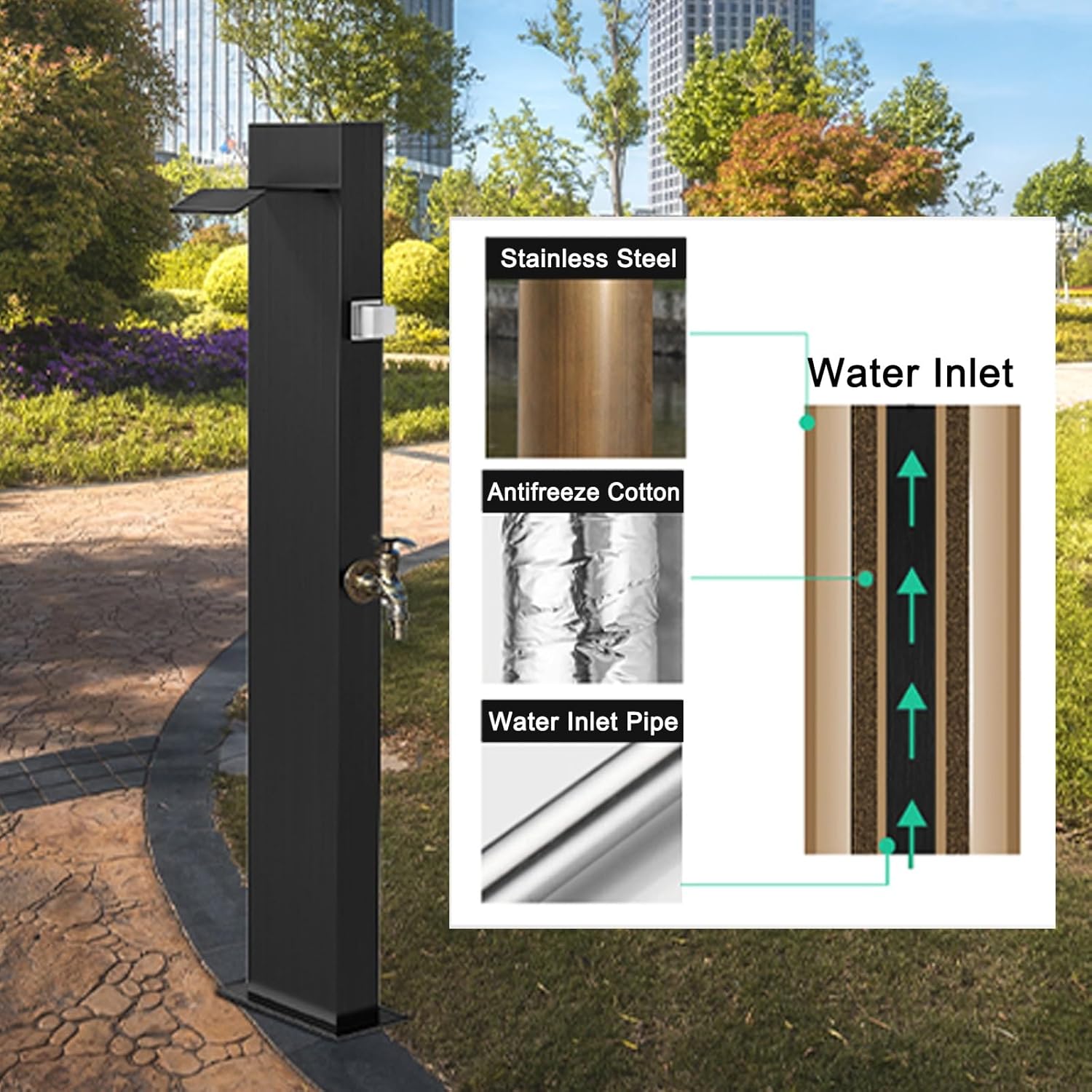 Our garden water column is crafted from high-quality 304 stainless steel, ensuring long-lasting durability and resistance to the elements. Featuring aluminum foil insulation cotton, this product provides exceptional heat insulation, preventing freezing and wear over time. Perfectly designed for diverse climates, it's an essential addition for any outdoor space—whether you're rinsing off after a gardening session, filling up your watering can, or creating a stunning decorative fountain. This versatile garden hose stand with faucet is ideal for various applications, including garden irrigation, car washing, and pet bathing. Its sleek design not only enhances functionality but also elevates the aesthetic of your outdoor area. With multiple color options such as Black, Gold, Red, and Green, it effortlessly complements any landscape. **Product Specifications:** - Name: Garden Water Column / Garden Hose Stand with Faucet - Material: 304 Stainless Steel - Color Options: Black, Gold, Red, Green - Installation Types: Side Entry, Bottom Entry - Dimensions: Height: 100 cm / 39 in, Width: 20 cm / 8 in, Waterfall Faucet Width: 16 cm / 6 in - Suitable Locations: Courtyards, Gardens, Schools, Parks, Villas, Factories, and more. **Packing List:** - 1 x Water Column - 2 x Faucets - 1 x Installation Accessories Set Transform your outdoor experience with our garden water column, blending functionality and style for all your watering needs.