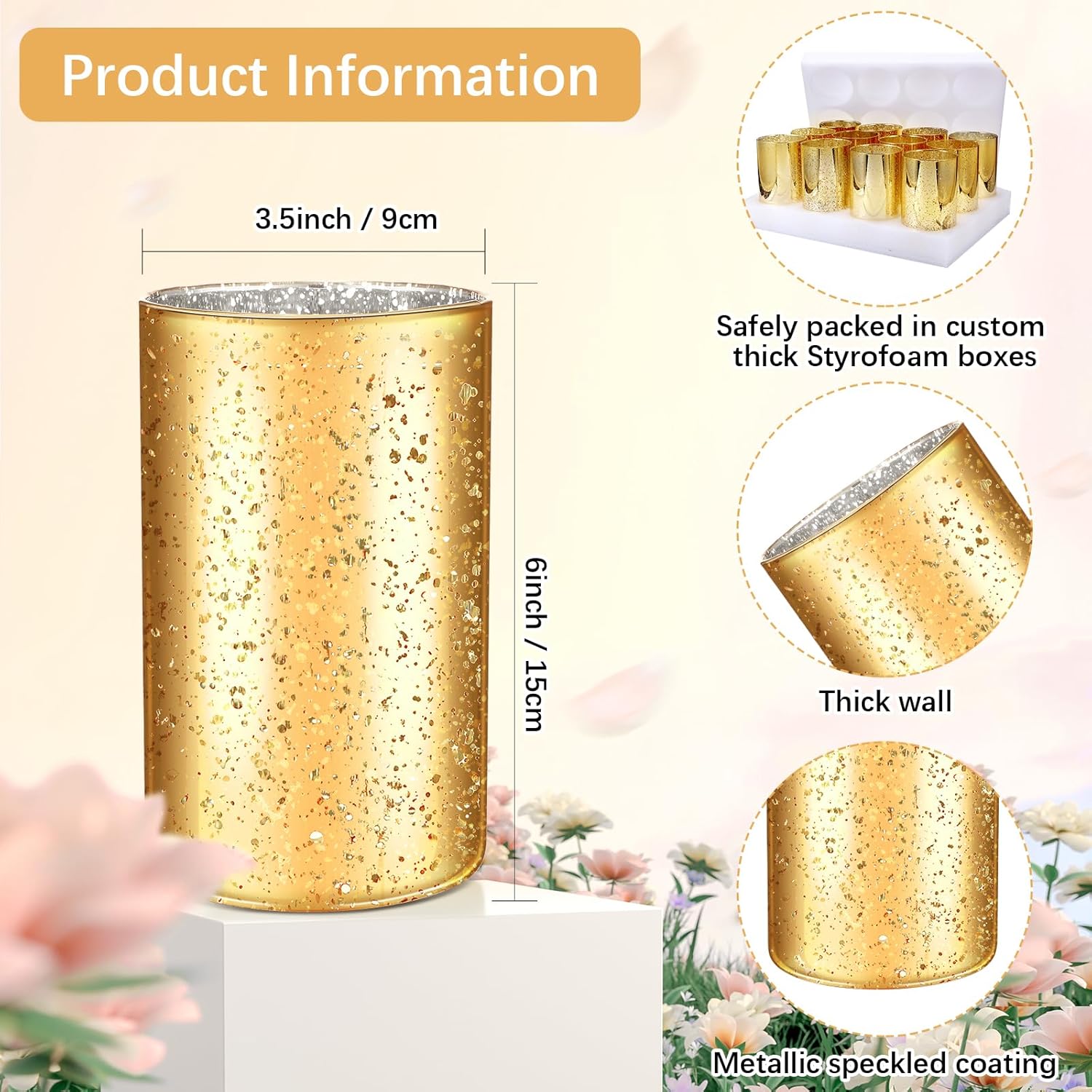 | Additional Features | wedding gold glass speckled votive candle holders bulk golden decor party decorations tealight table centerpieces bridal shower dinner home boho holiday birthday favors supplies bling vase 6 x 3.5 inch flowers day decorative rustic reception |
