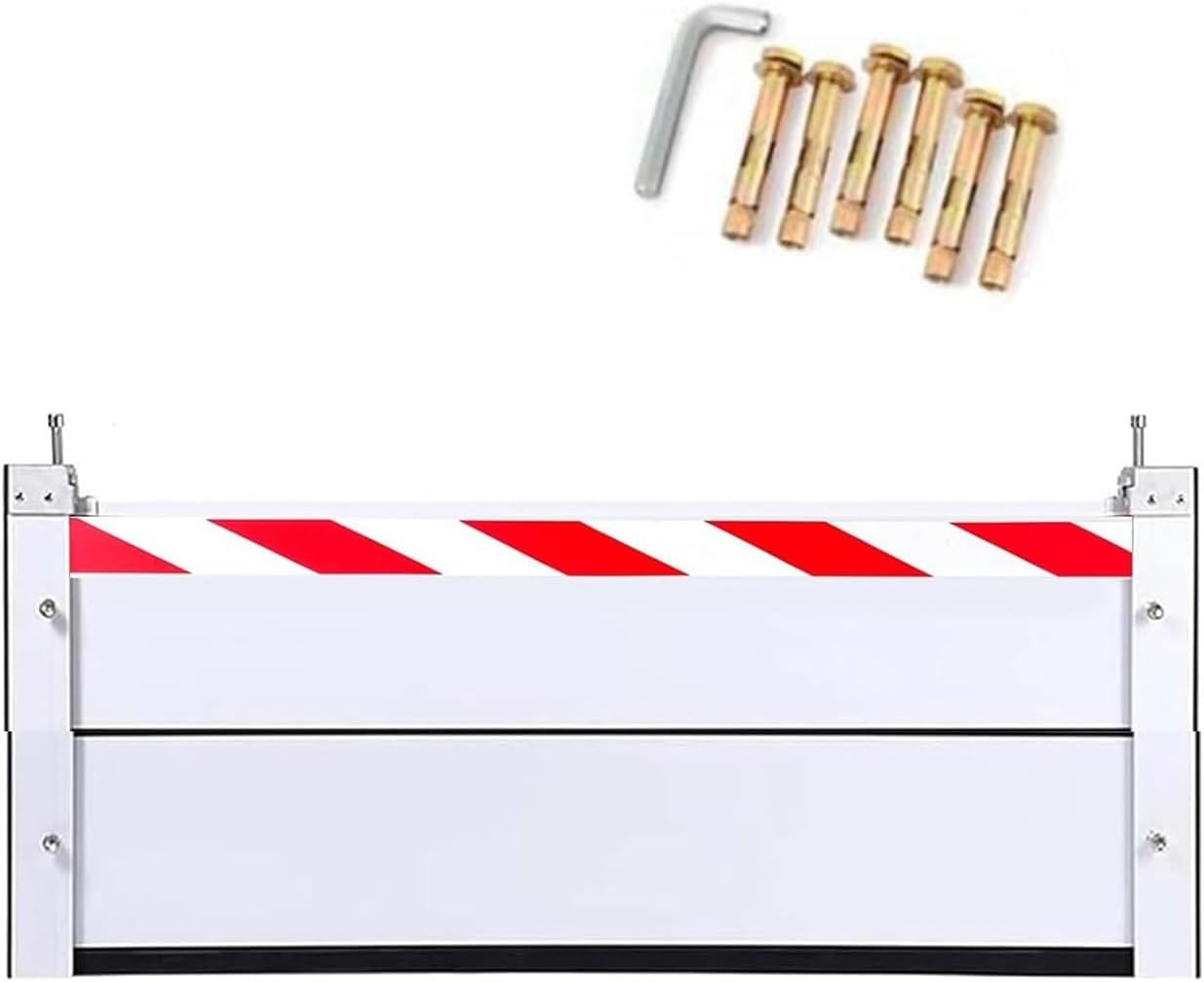 Flood protection barriers, water barriers against flooding, flood protection barrier made of heavy-duty aluminum, mobile flood protection wall for private households/commercial useSpecifications:Product name: Flood protectionMaterial: aluminum alloyPlate thickness: 40 mm/1.6 inchesDimensions: Custom-made sizeColumn size: 6 x 9 cmHeight of each flood protection wall: 20 cmApplication: Flood protectionAdvantage: Flood protection, strong, Operating principle: downward pressure and lateral pressure lockingApplication: Household, garage, subway entrance, flood protectionCharacteristics:①Made of aluminum alloy and rubber strips, waterproof and durable②Concave-convex connection design ensures a tight connection.③Multiple sealing rubber strips for good waterproof performance.4Reusable, saving the cost and effort of frequent replacement5Reflective warning strips are more user-friendly and can avoid collisions when walking at night.6 Easy to installScope of delivery:1 x flood protectionImportant instructions:1. Due to manual measurements, slight measurement errors may occur2. The pictures were taken by professional photographers. Please understand the differences caused by lighting effects and monitor's brightness/contrast settings etc.