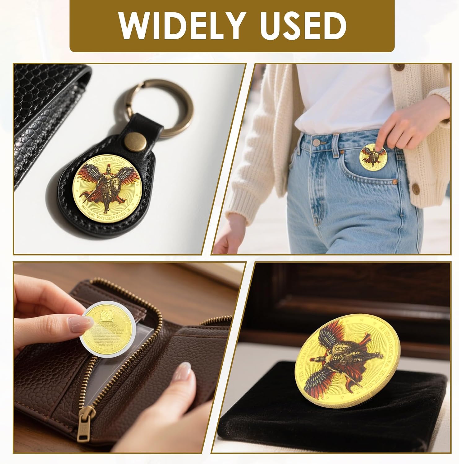 Why This Coin Stands Out: Exceptional Craftsmanship:Made from durable zinc alloy with gold plating that resists wear, ensuring long-lasting beauty. Versatile Use:Perfect for personal encouragement, military traditions, or as a cherished gift for loved ones in protective services. Portable Inspiration:Compact size makes it easy to keep this symbol of faith with you at all times – in your pocket, bag, or on your desk. Premium Presentation:Comes in a protective acrylic case, ready for gifting or display. Package Includes: 24 x Gold Plated St. Michael Challenge Coin Note: For best results, clean with a soft cloth to maintain shine.