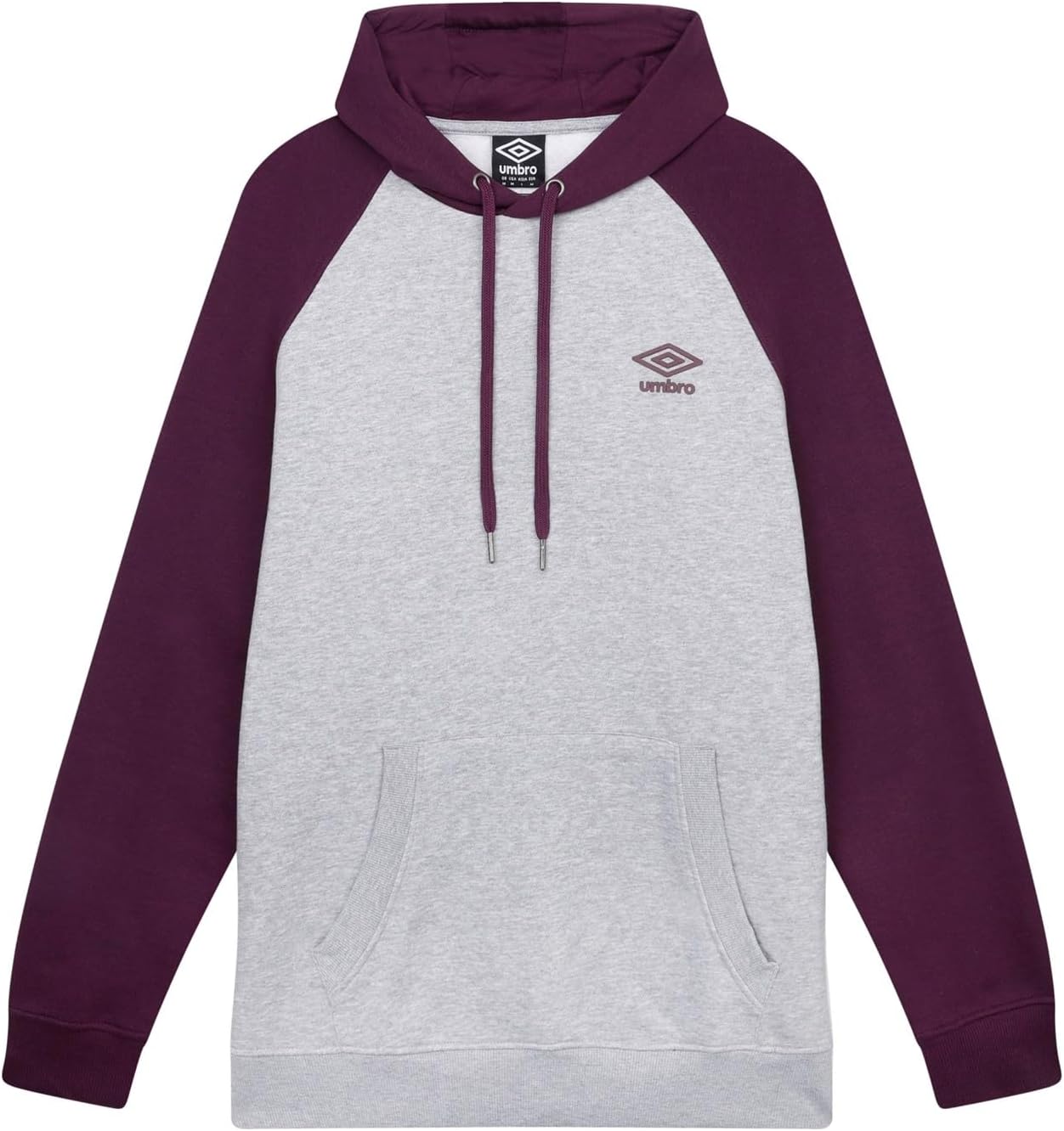 This Raglan hoodie is the perfect layer to add sporty style to your casual outfit. This trendy and colourful look is designed with contrasting raglan sleeves, drawstring hood and kangaroo style pockets, formed with ultra-sorted brushed fleece on the back for the perfect casual statement. Finished with embossed Umbro logo on the chest.