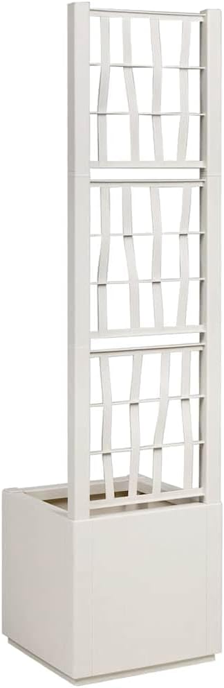 The Dark Garden Planter with Trellis seamlessly blends modern aesthetics with functional versatility. This stunning piece is perfect for those looking for minimalist decor with a hint of sophistication. With clean lines and a matte finish, it offers an elegant look that's just right for your living room, garden, or terrace.Durable Polypropylene Structure: Made with tough polypropylene, this planter is built to last, ensuring long-lasting use. Its abrasion-resistant quality means it's ready for all kinds of environments, providing a solid base for your plants.Modern Trellis Design: The included trellis not only supports climbing plants but also adds an extra touch of style. It's great for creating vertical gardens and adding depth to your living spaces, making it as practical as it is beautiful.Versatile Placement: Perfect for both indoor and outdoor use, this planter easily adapts to any setting. Whether it's in a cozy indoor spot or out on a sunny terrace, its stylish design enhances any decor, from traditional to contemporary.Effortless Care & Maintenance: Keeping it looking fresh is easy; just wipe it down with a dry cloth. To keep it in good shape, avoid direct sunlight to prevent any damage or fading.Compact & Stylish: Designed to save space, its sleek shape fits well in both small and large areas. With its trendy matte finish, it’s a good-looking addition that suits all kinds of indoor and outdoor settings.Color: WhiteMaterial: PolypropyleneOverall dimensions: 14.2 x 14.2 x 55.1 inch (L x W x H)Planter Box Dimensions: 38 LAssembly required: Yes