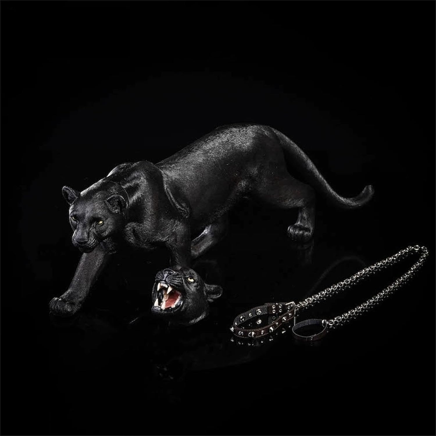 Product: Snow Leopard Panther Scale: 1/6 Material: Mos Resin The head can turn/ Eyes can fluoresce(Need purple light irradiation) Size: 14.1” L(360mm) x 3.9” W(100mm) x 5.5” H(140mm) Note: The Other Animal Figure and Accessories are not included.