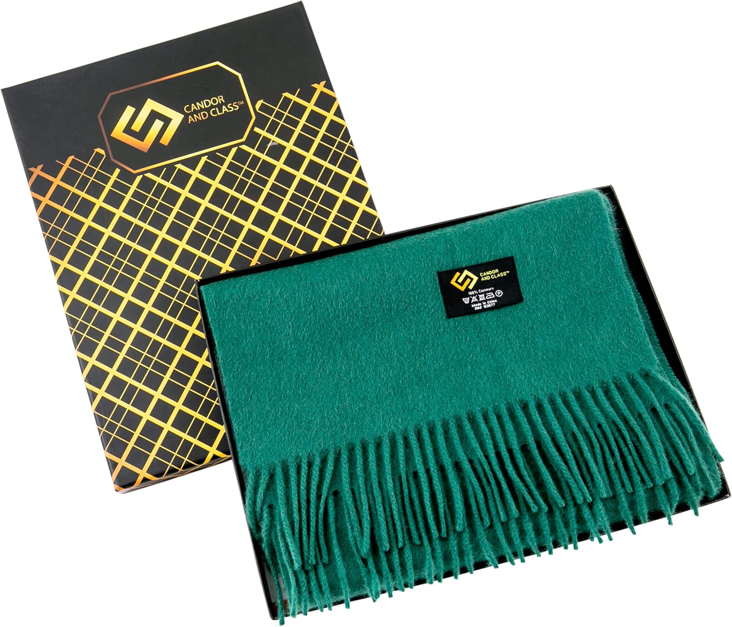 Love for Luxury, Appreciation of Class, and Quest for Quality. Why pay a fortune for inferior cashmere scarves? Worse yet, cashmere blends. Wrap yourself in style and comfort with the Candor and Class cashmere scarf. It all starts with the highest quality cashmere fibers and an eye for design that allows you to effortlessly dress with a traditional look that's right on trend. Whether you're shopping for a bold solid cashmere scarf for special events, an everyday neutral, or a plaid scarf that checks all of your must-have boxes, Candor and Class delivers comfort, quality, and style. Each pure cashmere scarf is crafted with the best cashmere fibers, which are hand-combed from the backs of grassland goats in Inner Mongolia. The heritage herds that graze over lush grasslands produce the finest quality cashmere in the world and hand-combing protects the delicate fibers from damage. Candor and Class utilizes water wave weaving technology for a thick texture that delivers the warmth you need with a lightweight feel. Pampered with Style and Elegance. Other brands may have introduced the world to traditional English plaid styles and heritage checkered prints, but Candor and Class perfected them. Shop a variety of plaid patterns that are artfully designed in complimentary colors that range from subtle and classic to eye-catching and bold. Each cashmere scarf is finished with a premium rolled fringe that won't fray and adds gentle motion to the lightweight, ultra-soft accessory. It All Adds up to Unsurpassed Comfort and Quality. Discover your new scarf obsession with a Candor and Class Pure Cashmere Scarf. You'll count on this cashmere scarf for many years to come. What gal/guy wouldn't love getting this cashmere scarf as a Christmas, Father's Day or Mother's Day gift? They're great for birthdays & graduations, too. Get your Candor and Class 100% Pure Cashmere Scarf TODAY!