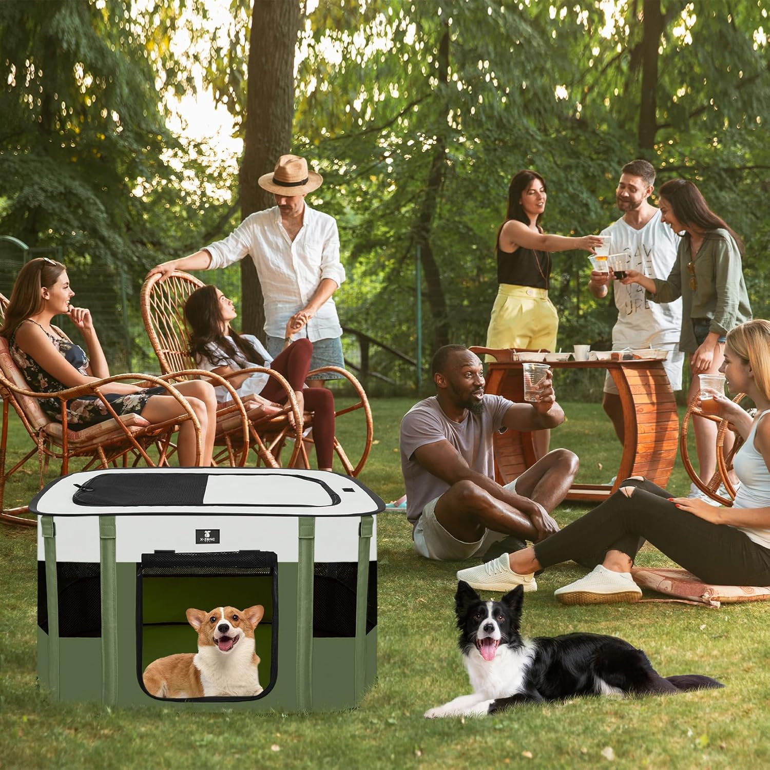 Product description Color:Black (Playpen) Basic information: Fabric: 600D X 600D Oxford cloth Lining: 230D polyester Mesh: hexagonal Zipper: metal slider and nylon teeth and durability is 10000 times Designs and Functions: 1. Lockable zipper prevent pet from escaping. 2. door and zip-off top panel for easy access. 3. 4 mesh side designs makes it good ventilation. 4.Foldable make it easier to travel. 5. Easy to set up without tools. 6. Side-pockets can store small goods. Attention: Please measure your pet before buying.