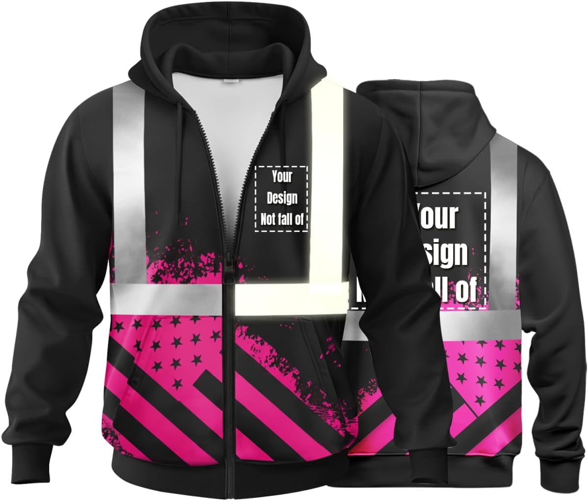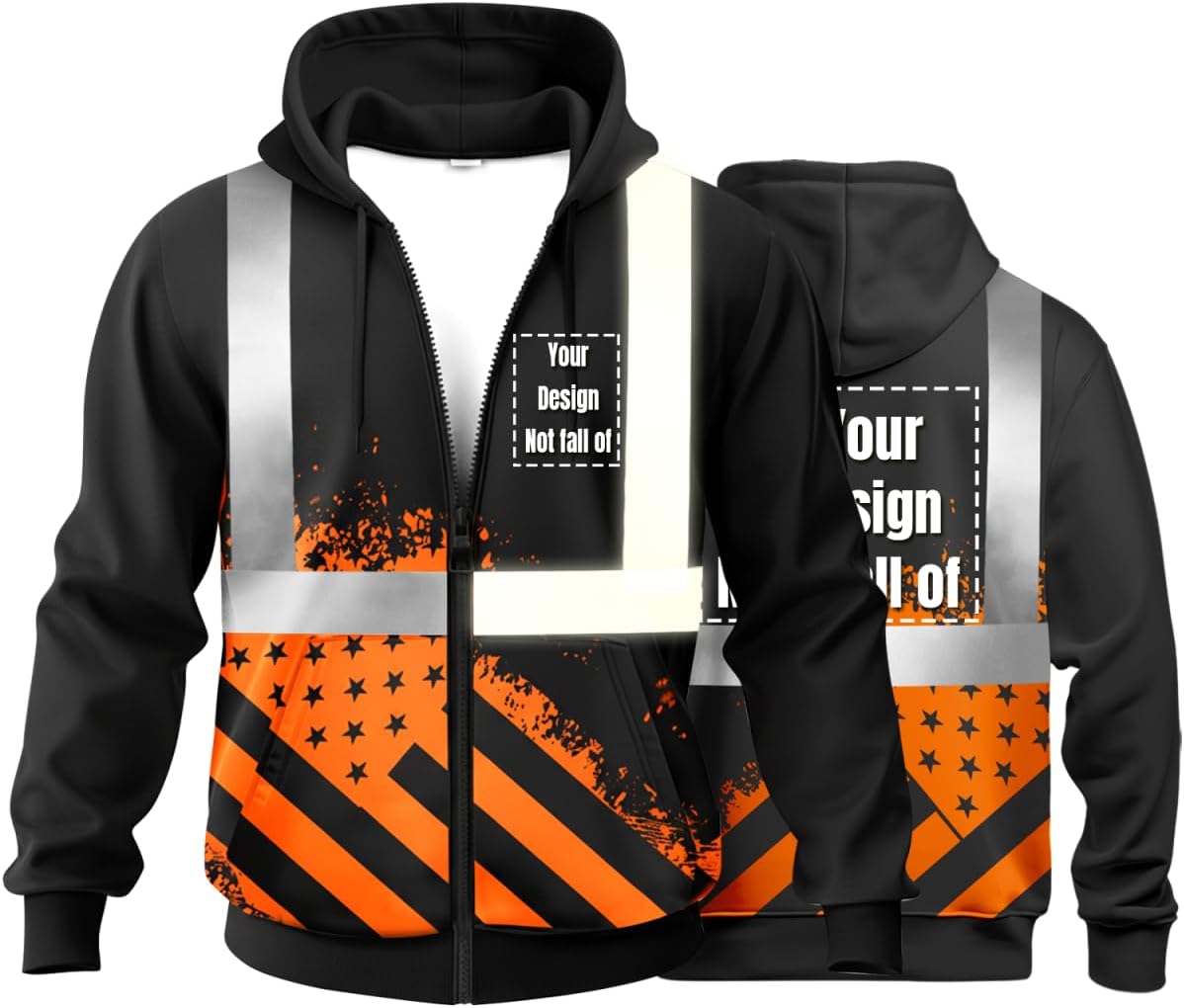 Stay safe and professional on the job with our High Visibility Reflective Safety jacket. Designed for the modern worker, this hoodie features high-quality reflective strips that wrap around the torso and shoulders, ensuring you remain visible even in the darkest conditions. Beyond its looks, this jacket is built for comfort. The interior is lined with a thin, soft fleece that provides the perfect amount of warmth for outdoor work without overheating. It's an excellent choice for construction workers, traffic controllers, and warehouse staff who need reliable gear that lasts through the toughest shifts. We also offer customization options, allowing you to add your company logo or team name. This makes it the perfect uniform for groups and businesses seeking a professional identity that promotes safety first. Whether you're on a busy construction site or directing traffic, this jacket provides the visibility and comfort you need to get the job done right.