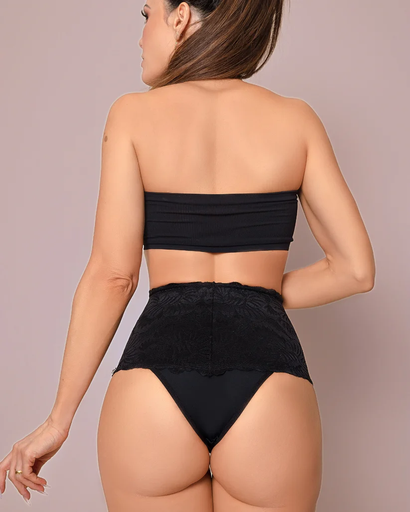 Com malha compressiva, ela oferece um suporte ideal, garantindo um contorno perfeito para o corpo. O detalhe rendado adiciona um toque de sofisticação, enquanto a abertura frontal proporciona conforto e praticidade. Perfeita para quem valoriza estilo sem abrir mão do conforto.