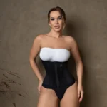 O Espartilho Nay é confeccionado em malha de alta compressão e possui a tecnologia Compression Shape, proporcionando firmeza e conforto para valorizar suas curvas. Com 20 barbatanas e proteção em toda sua extensão, garante uma sustentação precisa e modelagem impecável. Possui 6 fechos reforçados, oferecendo segurança e ajuste perfeito conforme você vai reduzindo medidas. A fita de cetim ajustável nas costas permite um ajuste personalizado, garantindo que o espartilho se adapte perfeitamente ao seu corpo. Ideal para quem busca definição, conforto e elegância em uma única peça.